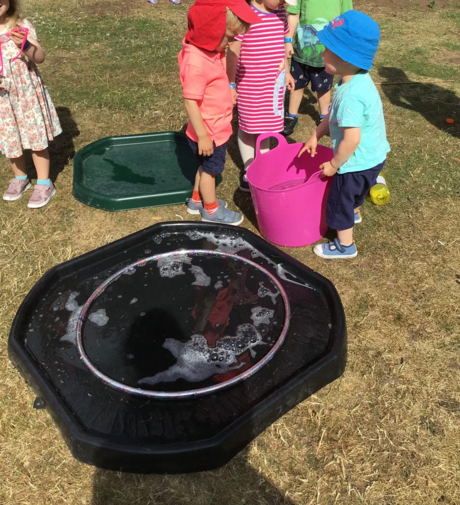 Other wonderful activities included, spray painting, perfume making in the water tray, entering the ring of fire, sandcastle building and hook a duck.