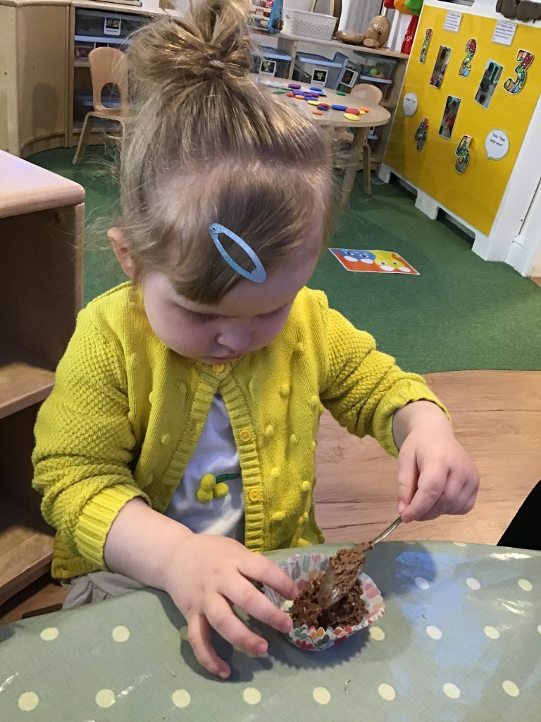 The children took part in lots of fun activities from decorating their own Easter egg template pictures, making some yummy Easter nest cakes using shredded wheat and chocolate…. (very yummy and messy!) to having their very own Easter egg hunt out in the garden!
