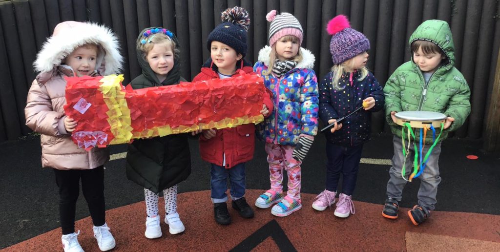 February got off to a roaring start with our Chinese New Year celebrations. The Year of the Tiger saw the children making colourful lanterns and a wonderful dragon using recycled junk. They loved making the dragon move to the sound of the tambourine. Tactile fun was had by all as they handled some slimy noodles.