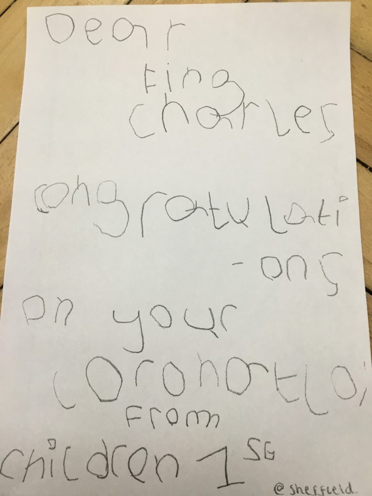The Early Years at Sheffield decided to send a letter to King Charles to congratulate him on his upcoming Coronation. Included in the letter are some delightful drawings of Charles and Camilla which we’re sure the royal couple will treasure!
