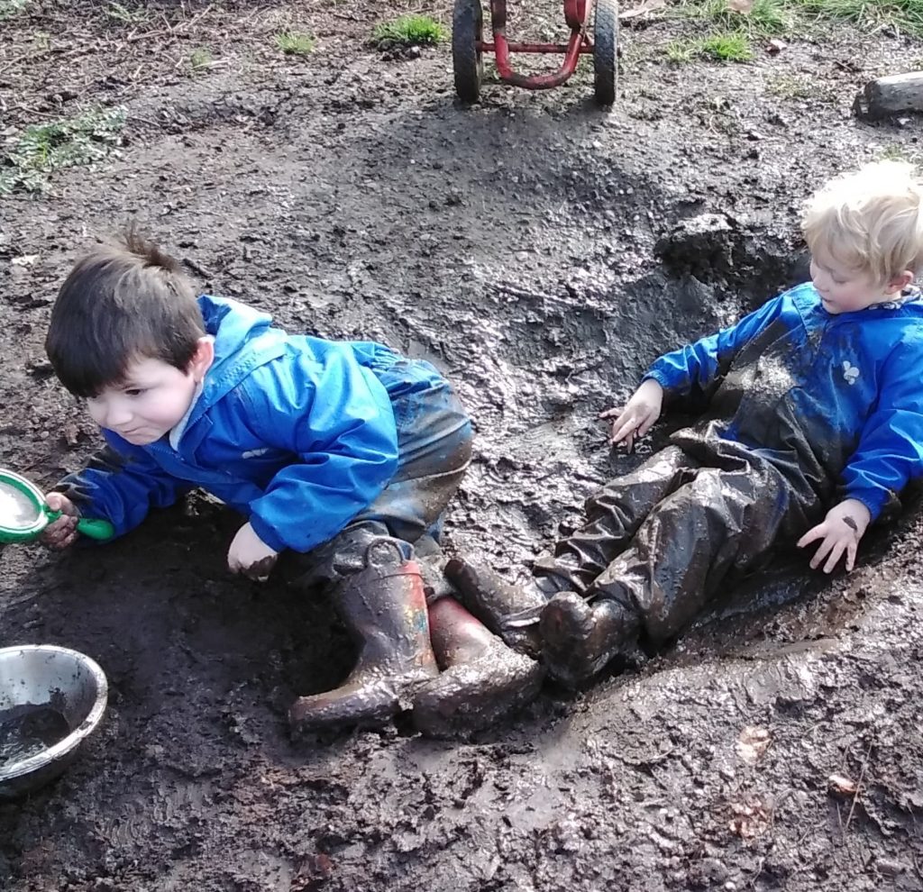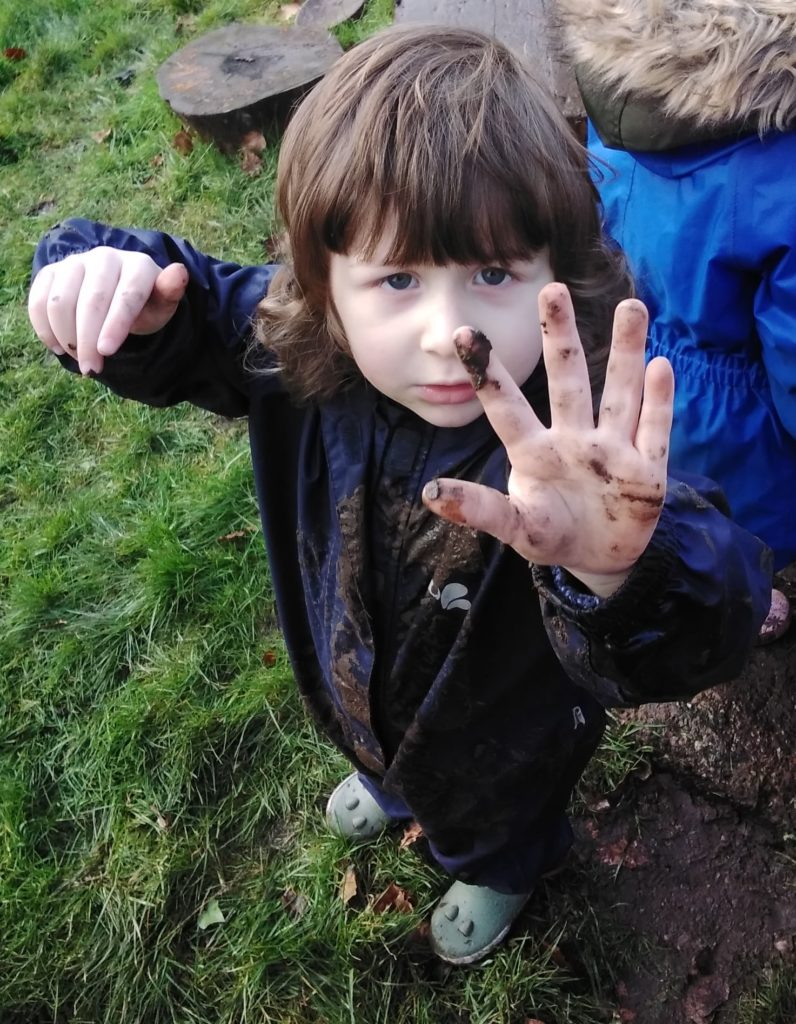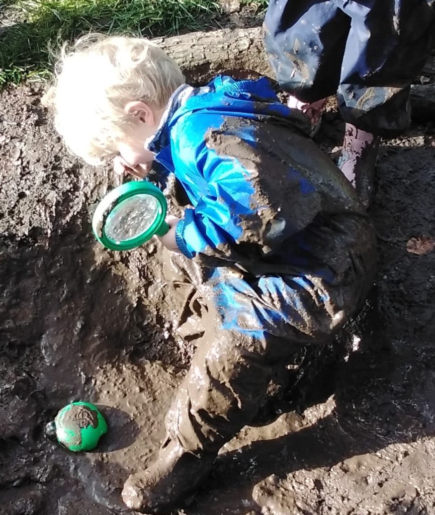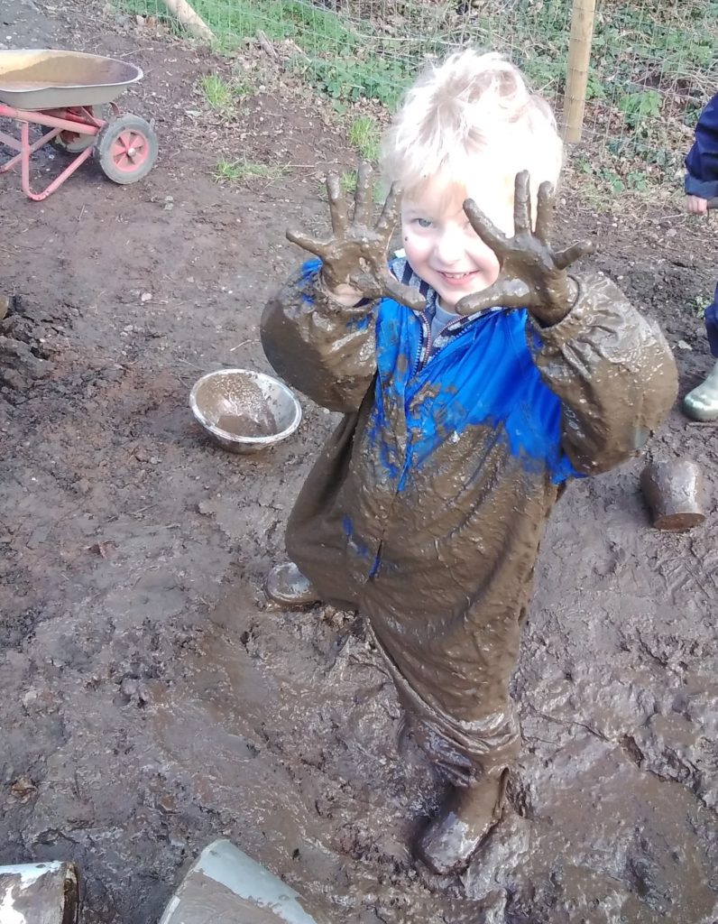 At the end of the morning we were so muddy that Miss Claire had to hose us down before we took off our waterproofs! This was great fun!