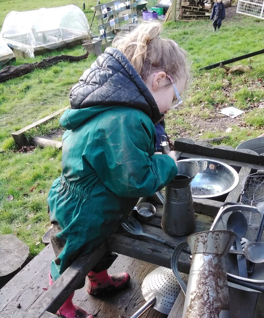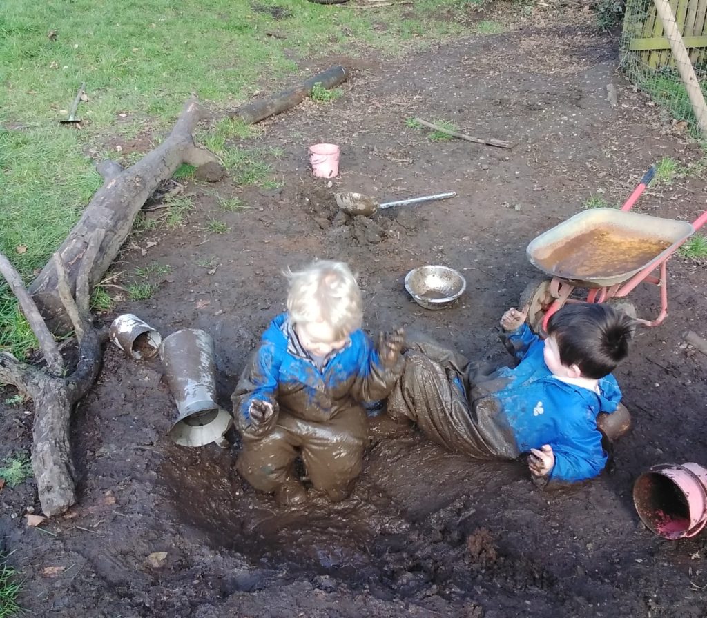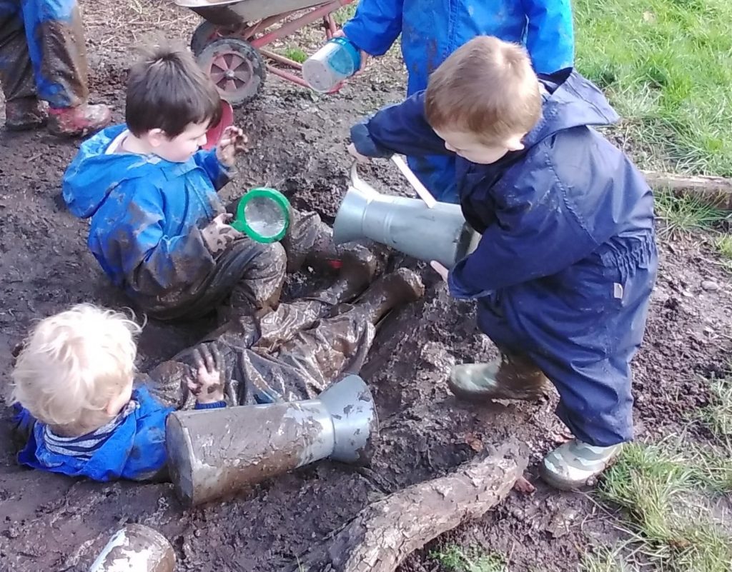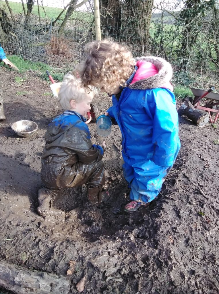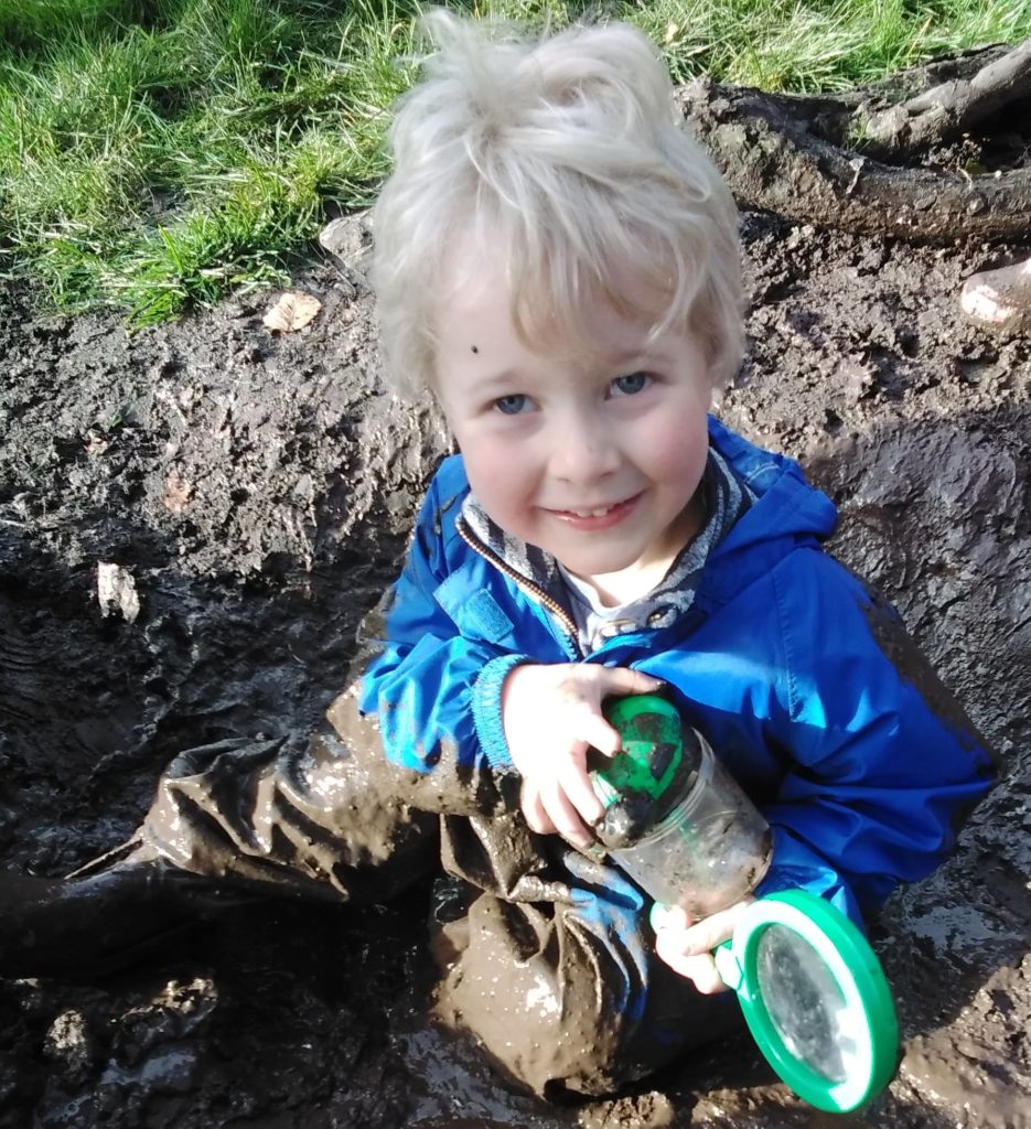 At the end of the morning we were so muddy that Miss Claire had to hose us down before we took off our waterproofs! This was great fun!