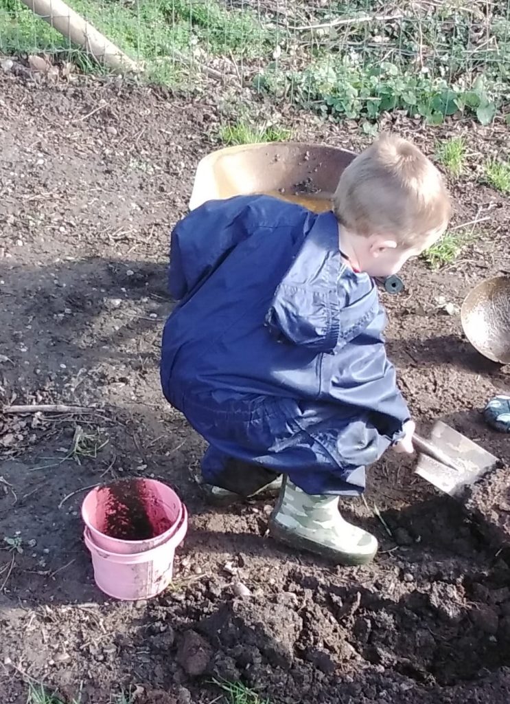 We went down to the field and found our wheelbarrows full of water from the rain. We decided to pour all the water onto the soil and make lots of squelchy mud!