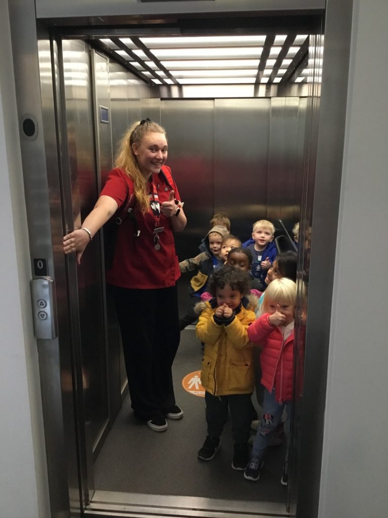 We then had a stop off in the board room where we designed our own cranes and met Billy the Builder who came to finalise our perfect visit! Going up in the lift was pretty amazing!