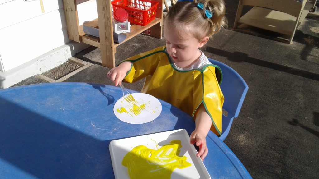 The Peter Rabbits were excited about taking their activities out into the garden, creating amazing yellow chick paintings!