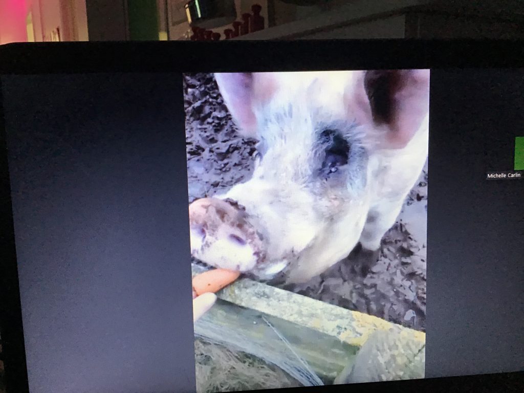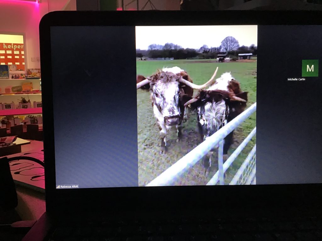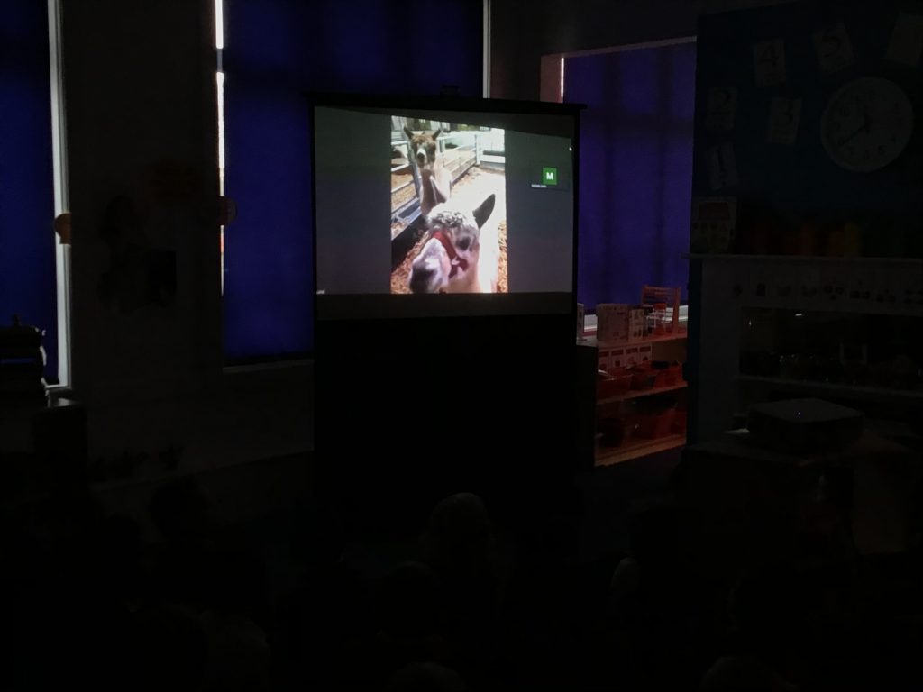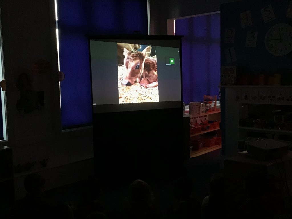 We set up our large screen and projector in our early years’ room and were able to zoom call White Post Farm!