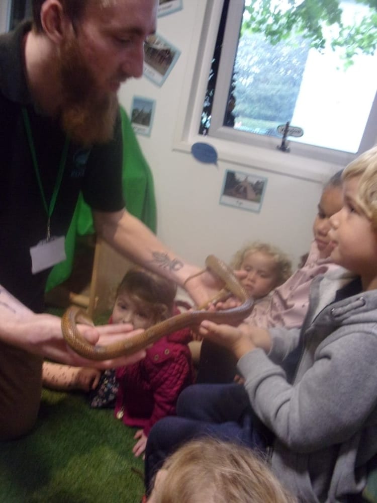 Wow! Such an exciting visit from the Ranger at ZooLab who came to tell us all about some rather fascinating creatures. The visit was all the more fun because the Ranger brought along all kinds of creatures that the children would not usually have the opportunity to see, especially up-close. There was a tarantula, a snake, a centipede and a rat. Some of the children were even brave enough to touch them, making this a unique hands-on learning experience.