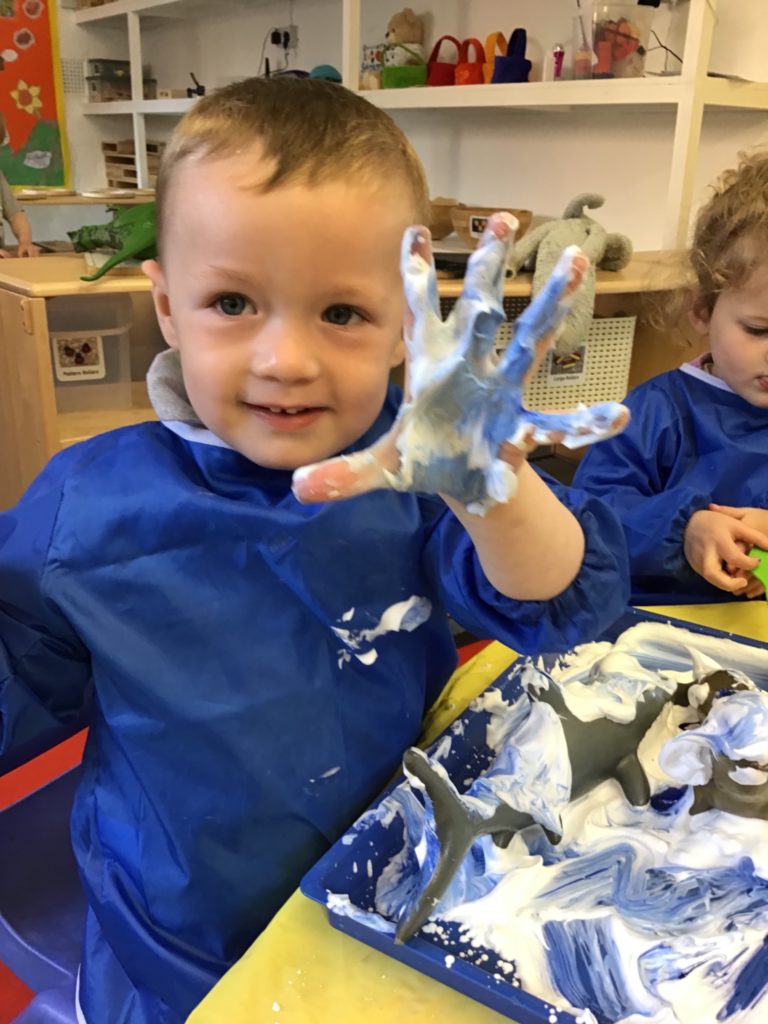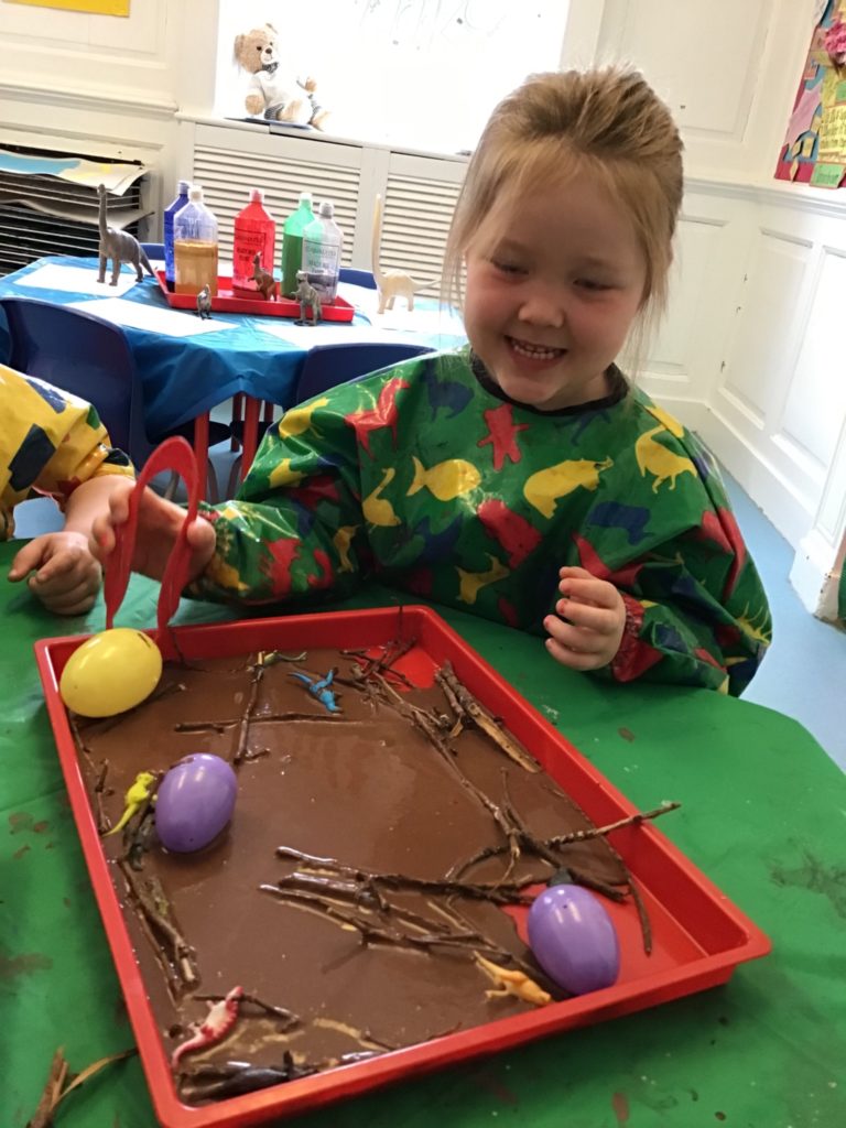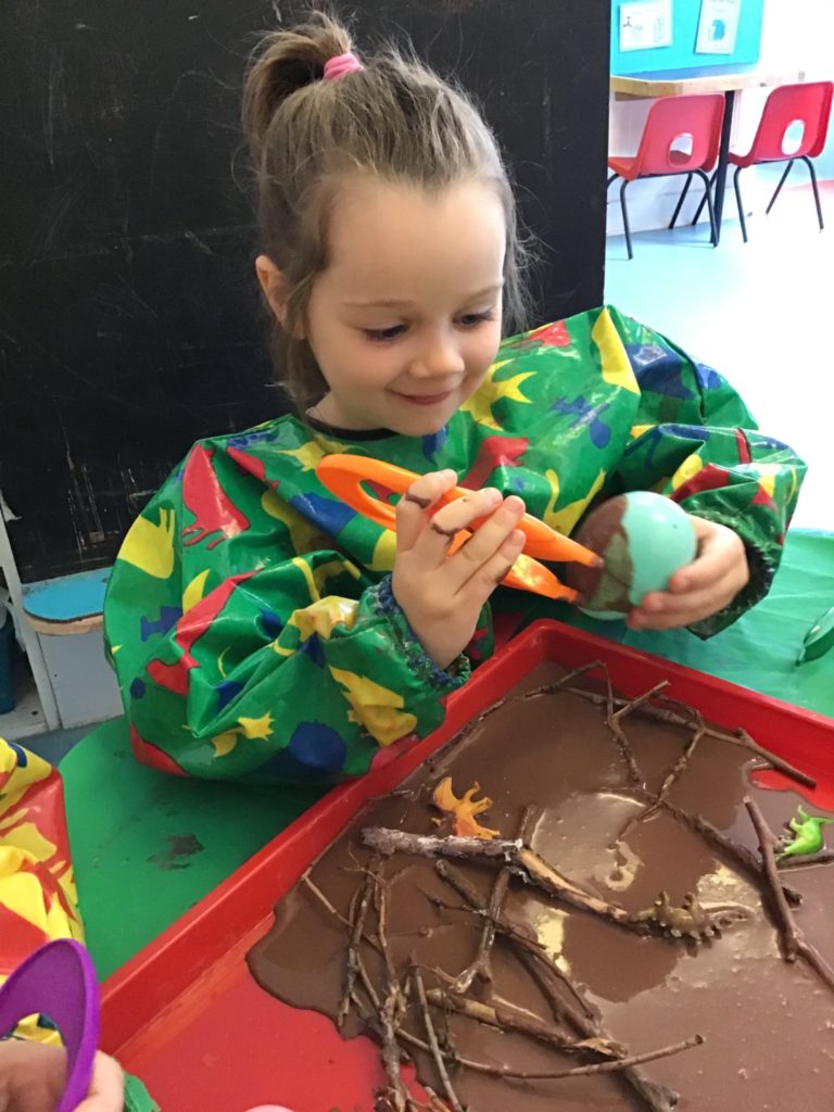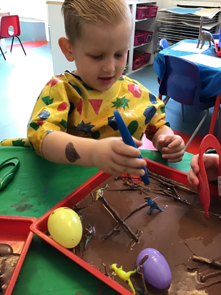 The dinosaur adventure gave the Early Years the opportunity to explore the dinosaur tuff tray, stimulating the children to create their own adventures with the resources and materials. Making dinosaur fossils using the mini dinosaurs and play dough was a very hands on experience and using their sense of touch and smell helped the young adventureres to enjoy the cocoa dinosaur swamp!