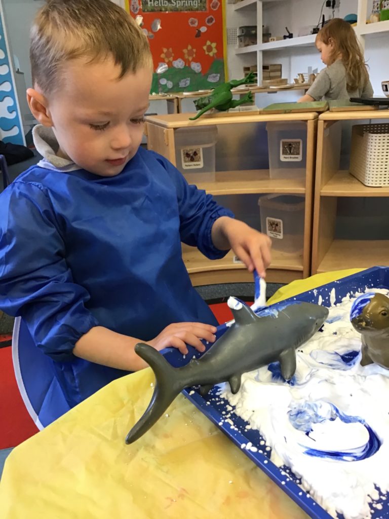 In this very cold spot, they enjoyed some Arctic inspired messy activity, exploring the animals in more detail and noticing the different features on each.