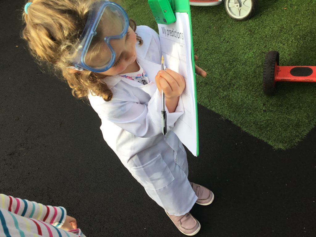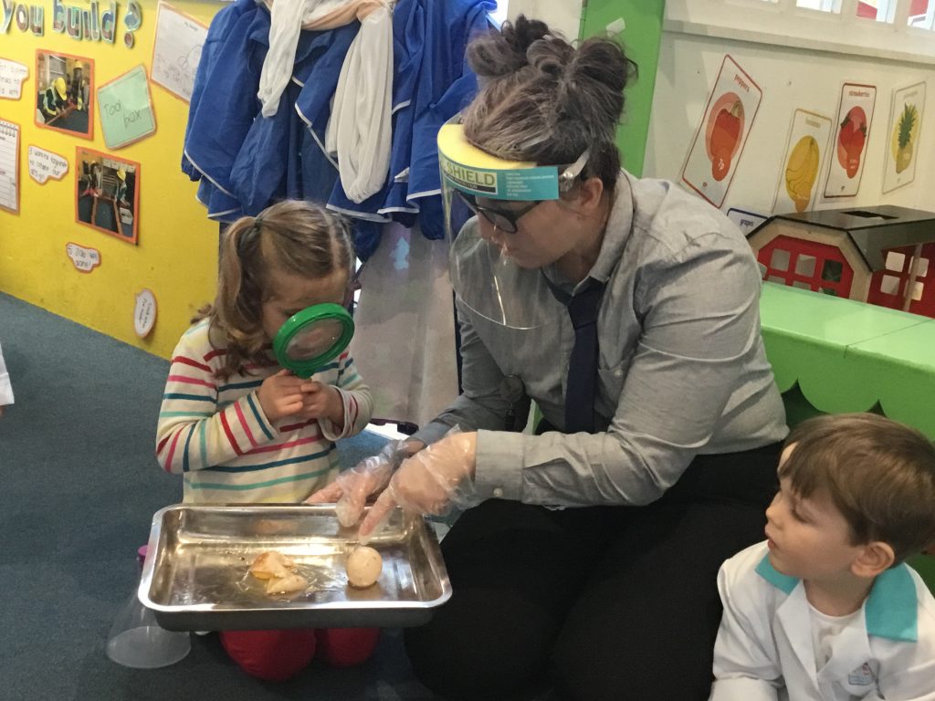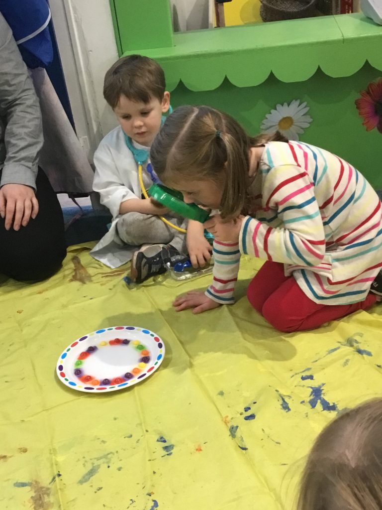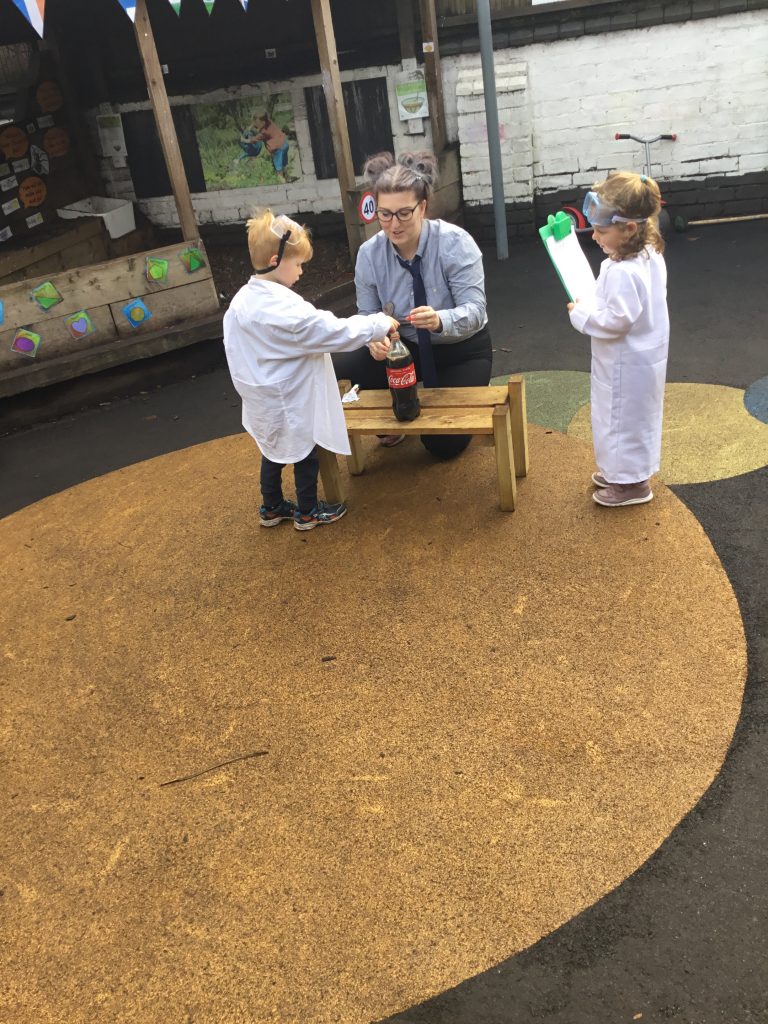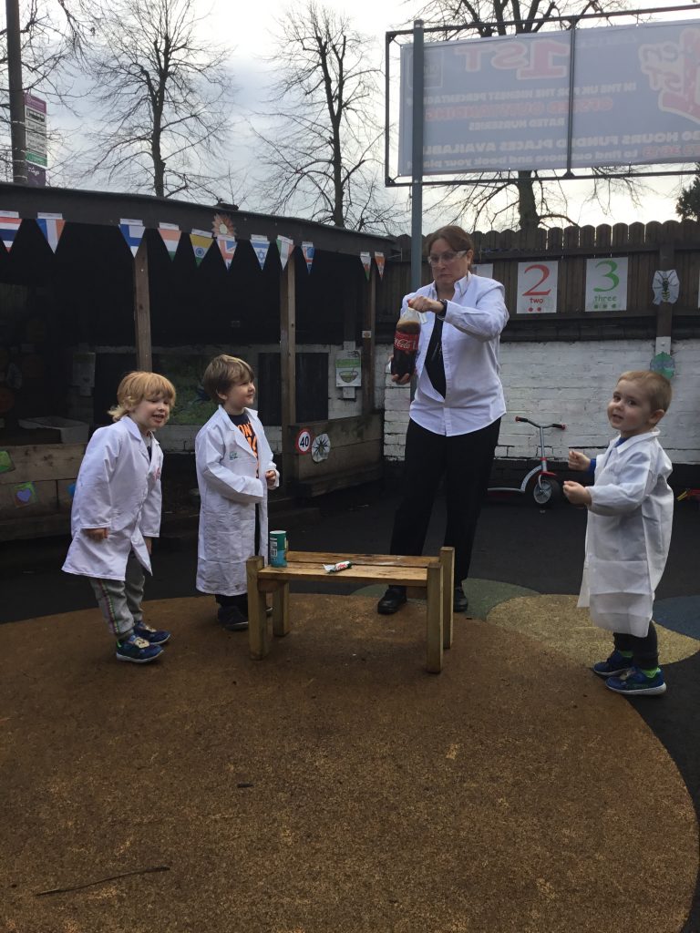 To get into theme, the children along with Miss Kathryn and Miss Frankie put on their white coats like those worn by scientists and carried out a wide range of experiments.