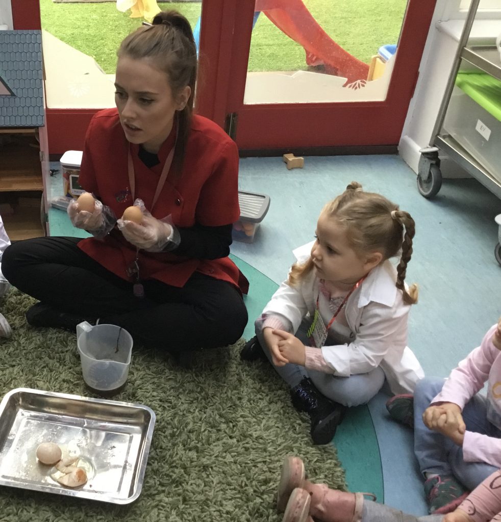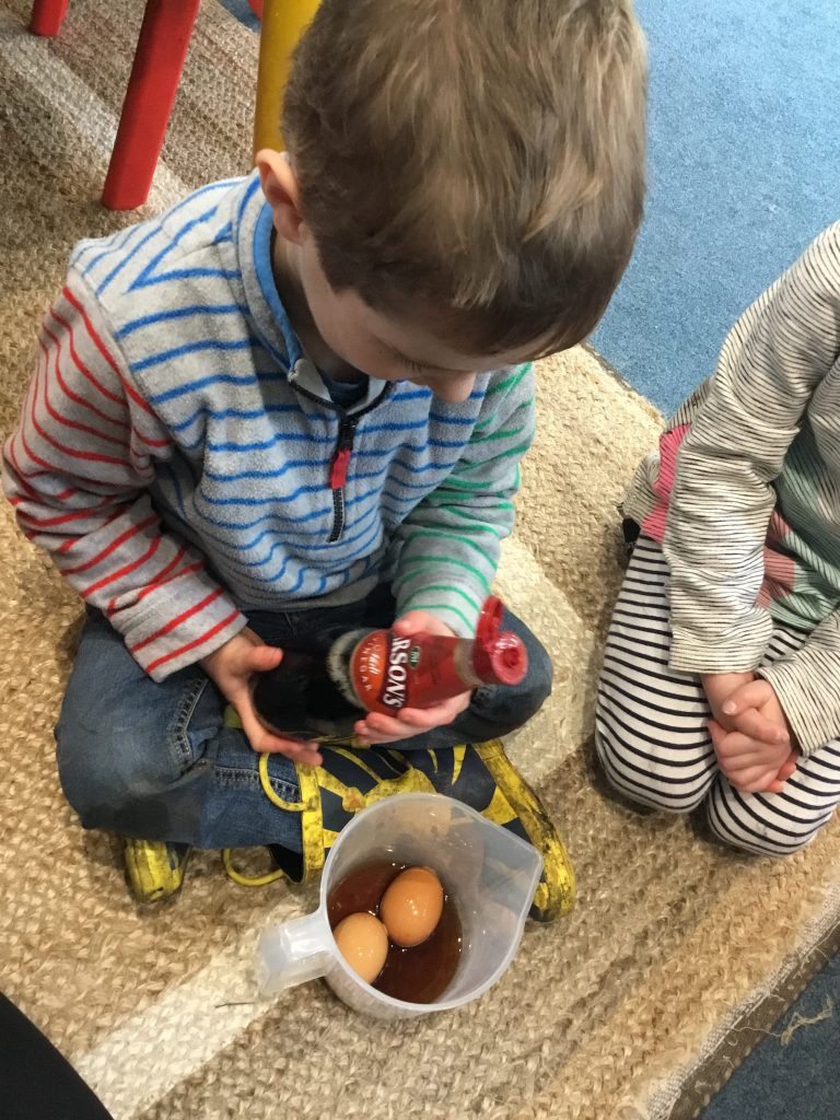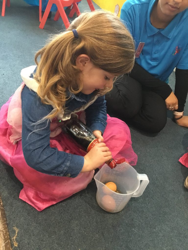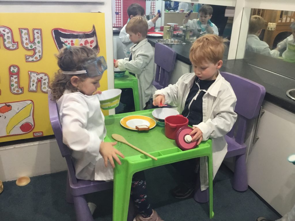 To get into theme, the children along with Miss Kathryn and Miss Frankie put on their white coats like those worn by scientists and carried out a wide range of experiments.