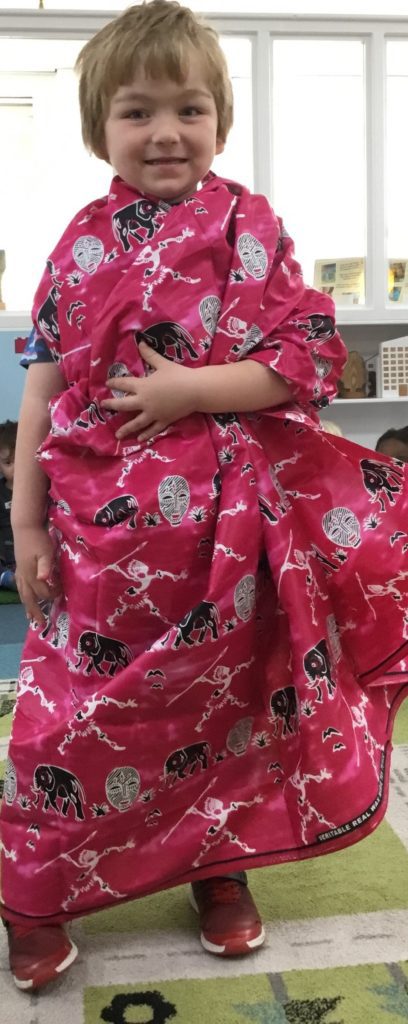 Bemma brought with her some beautiful fabrics from her hometown in Ghana and some of the children dressed up in traditional colourful robes, carrying bowls on their heads and babies who were tied to their backs.