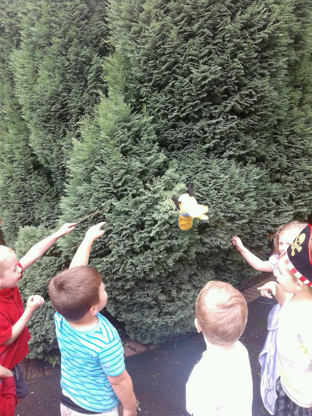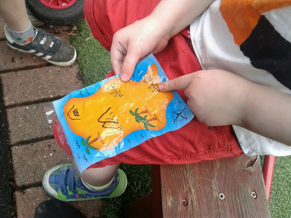 In the construction area the children worked together to make a big pirate ship with a flag. Soon they were sailing to faraway places seeking treasure! Meanwhile, some  pesky pirates came whilst we were on an adventure and stole the pet parrot belonging to one of our children!  This called for a major rescue mission and so we went on a hunt with our maps using our positional language to figure out where the pirates had hidden the parrot. With great team work skills, the parrot was soon found and re-united with its owner!