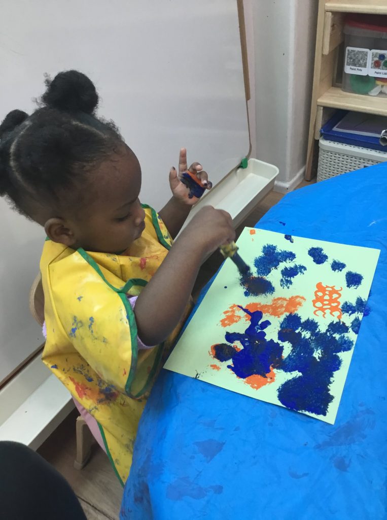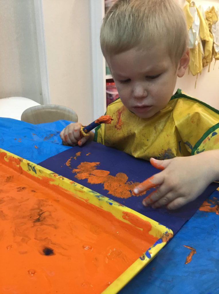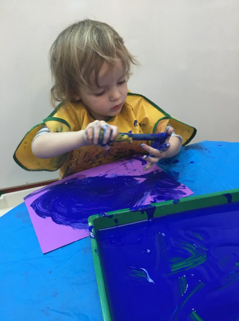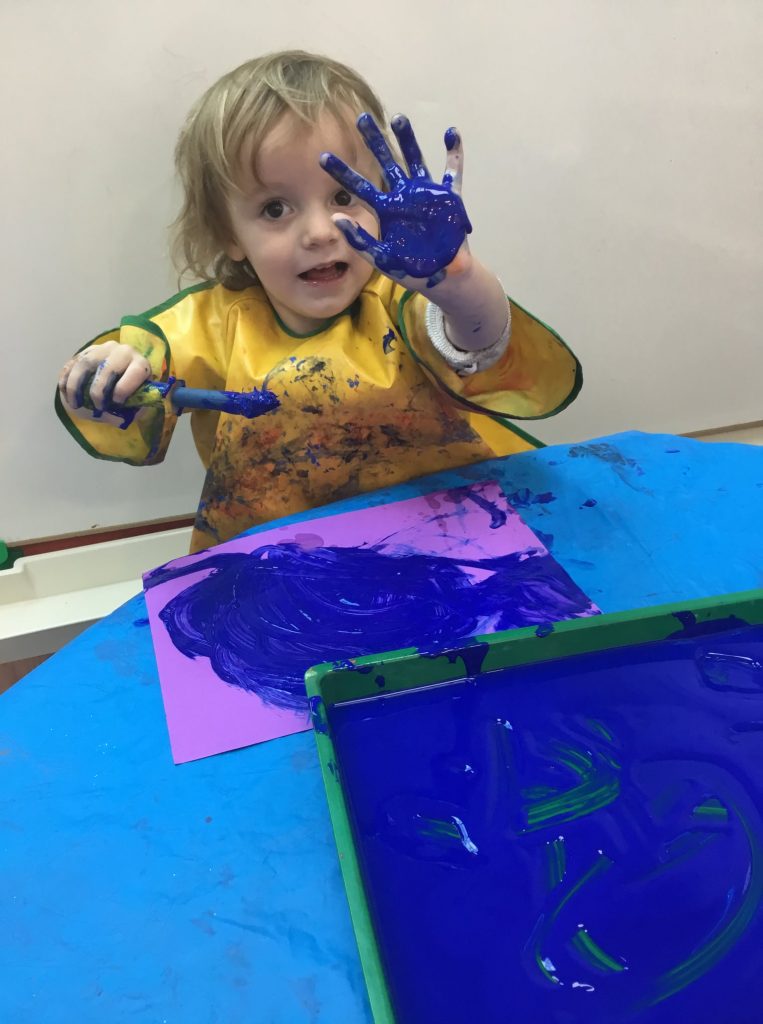 Also busy with the ‘All About Me’ topic, the Benjamin Bunnies showed how clever they are by applying paint to their hands to make some colourful handprints. They used both the paint tray and the paint brushes to get extra messy and make their perfect prints! Well done Benjamin Bunnies!