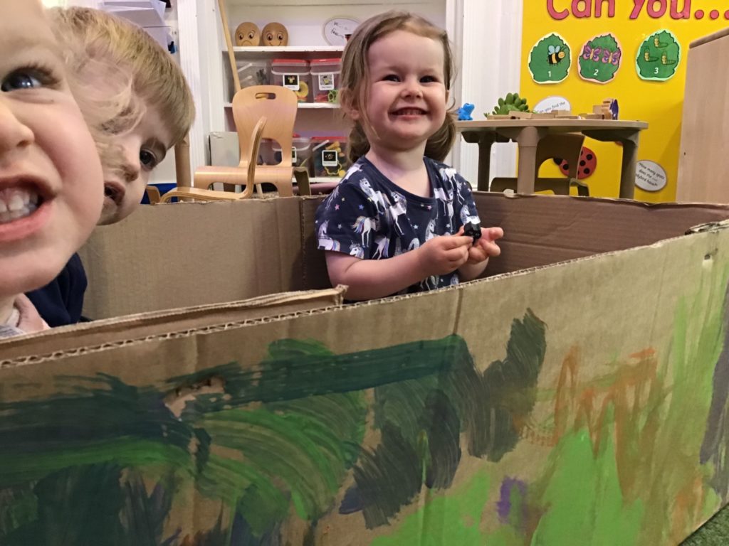 Everyone has enjoyed playing in their creation, climbing in and out confidently with their friends. We also sang some songs in it too. ‘Row, Row, Row Your Boat’ was the children’s favourite!
