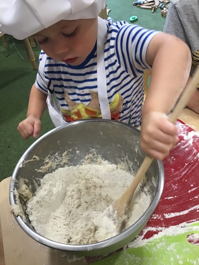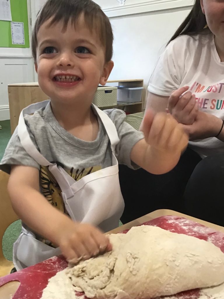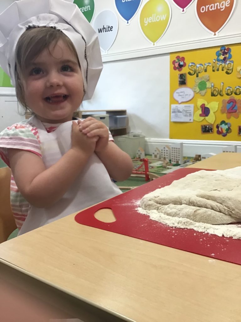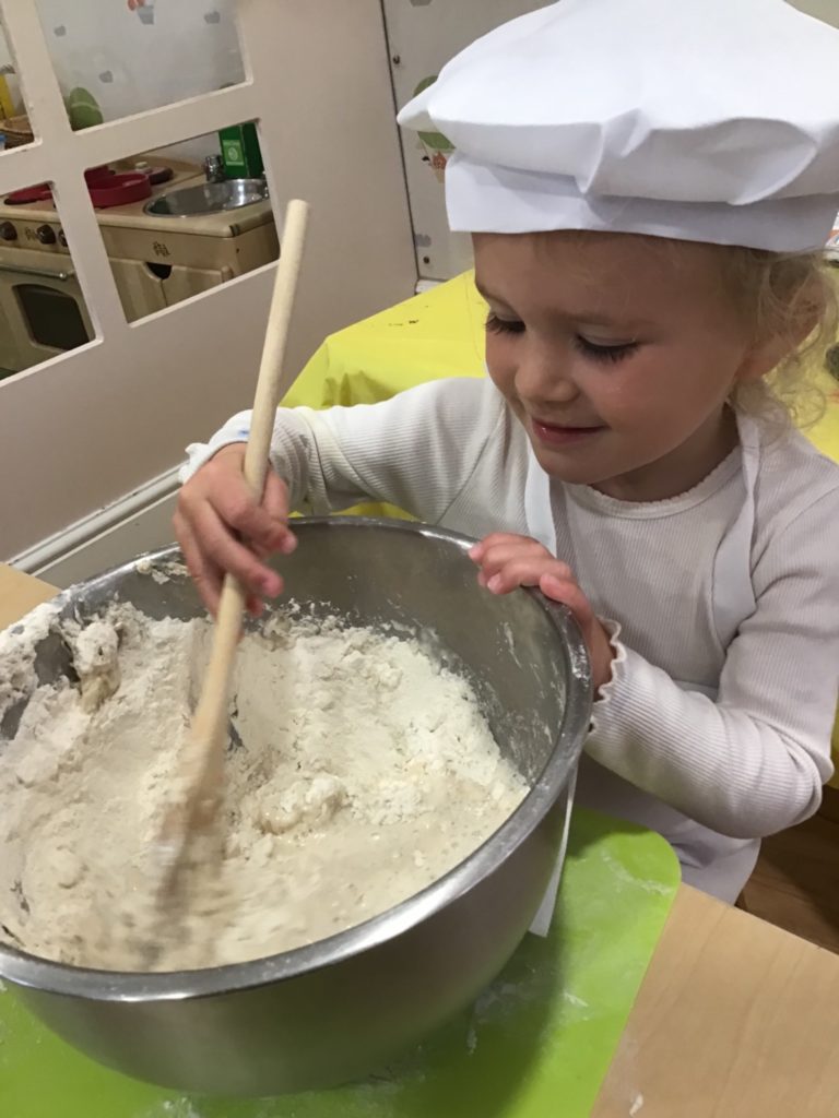 Miss Zoe was on hand to help the children add the various ingredients, mix them together and then kneed the dough before baking. The Little Red Hen would have been so pleased to see everyone lending a hand to make such delicious bread.