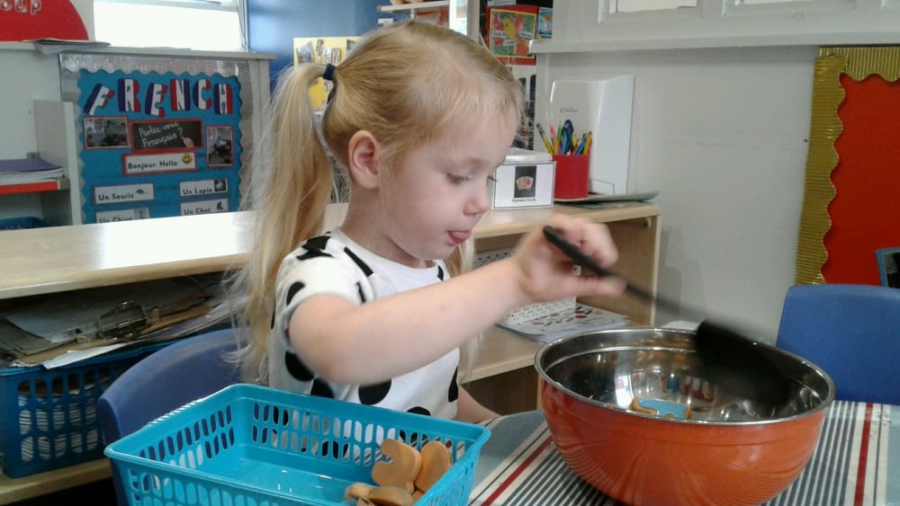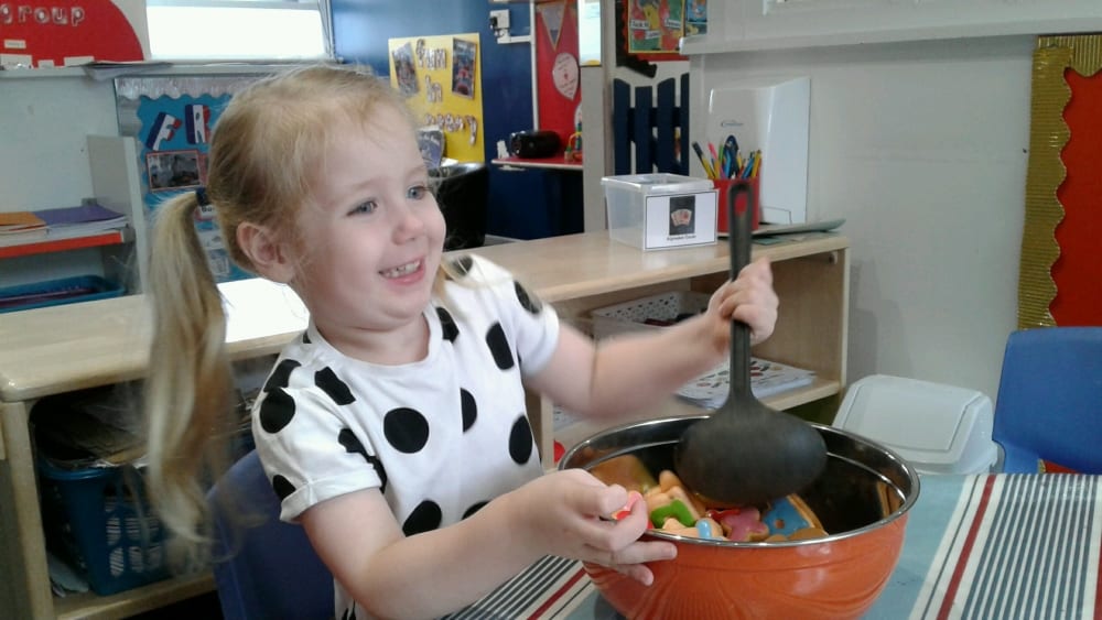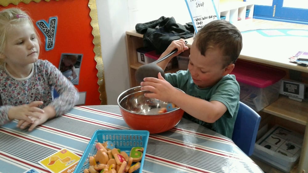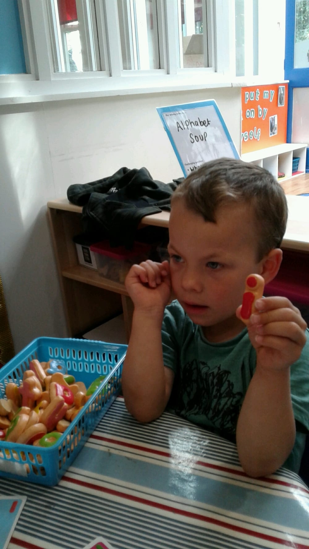 Our school leavers have been having fun with early phonics by making alphabet soup! The children found a letter to put in the soup and together we came up with ideas of things that begin with the letter.
