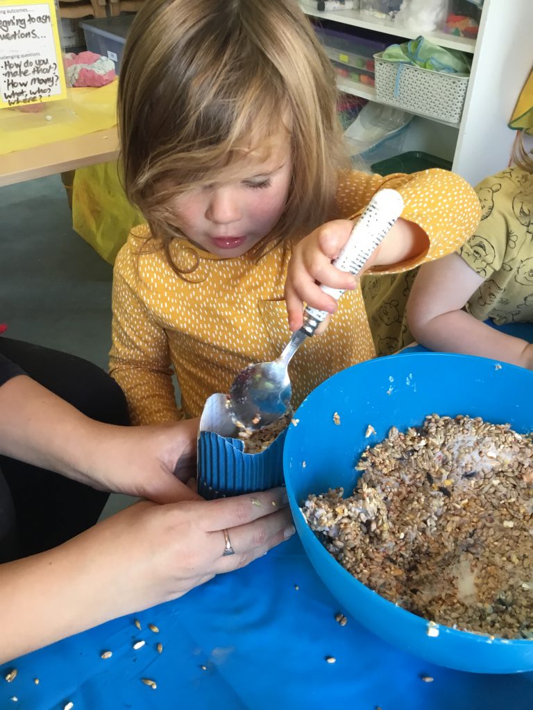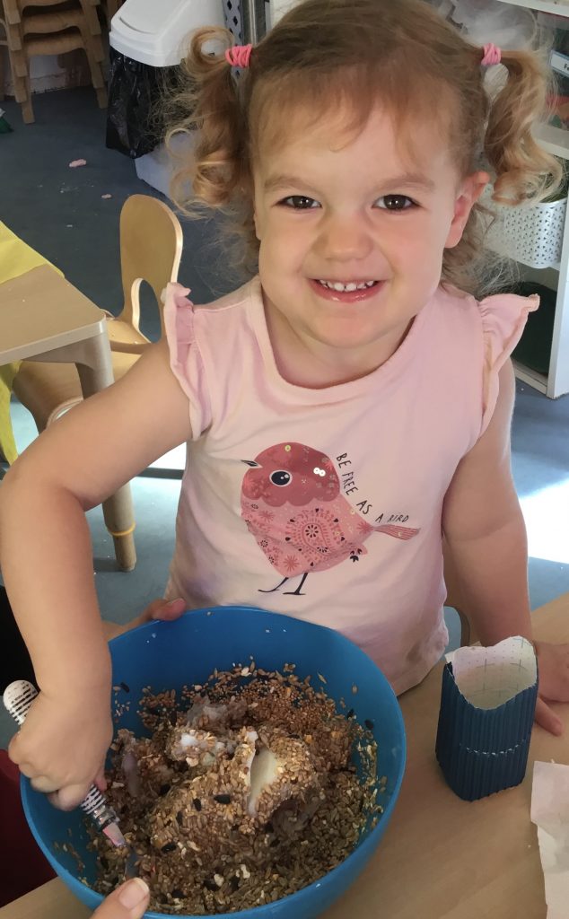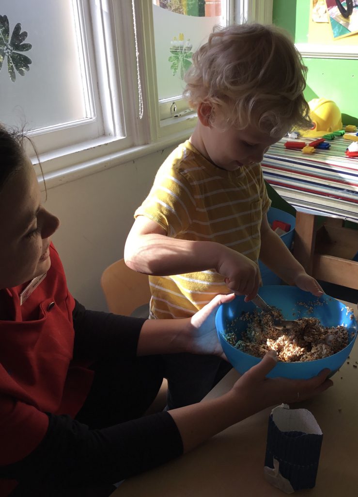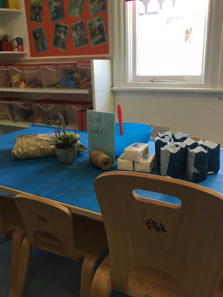 The children decided to make their own bird feeders to take home for the birds in their gardens. Everyone was soon busy mushing together seeds and lard and using the mixture to fill containers of goodness for the hungry birds who visit their gardens. The children are looking forward to watching the visiting birds and seeing how many varieties the feeders attract.