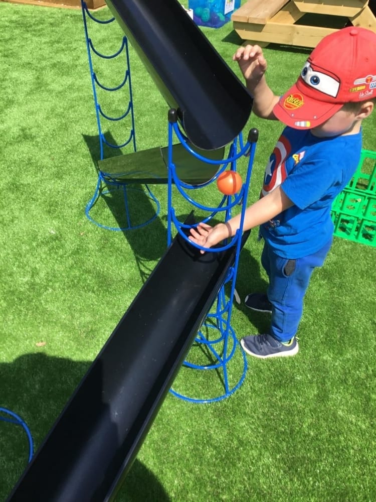 Elsewhere the children have had some challenges to address. They’ve been solving the problem of how they can fit the pipes together to make a run for the balls to roll down. So many solutions to this open-ended problem which kept them thinking and testing out their ideas.
