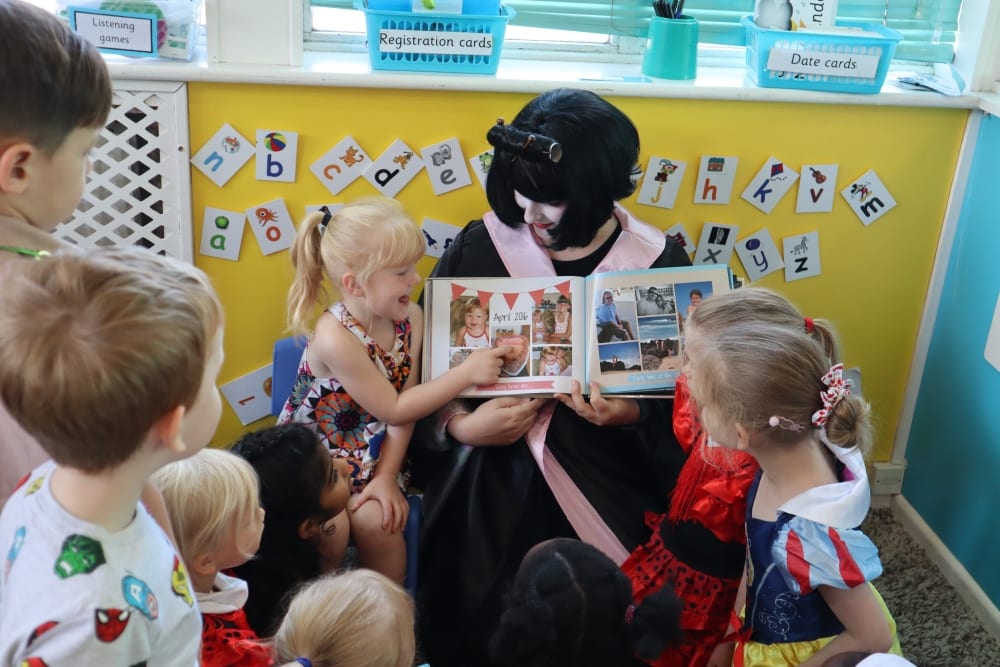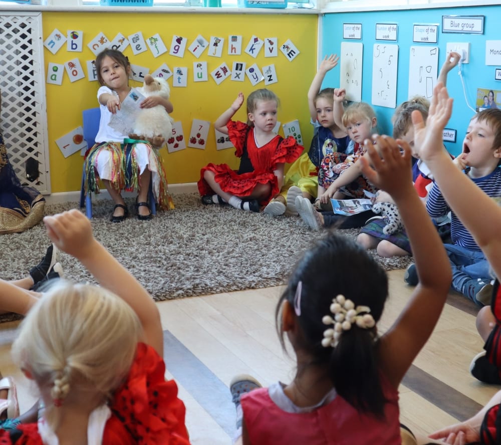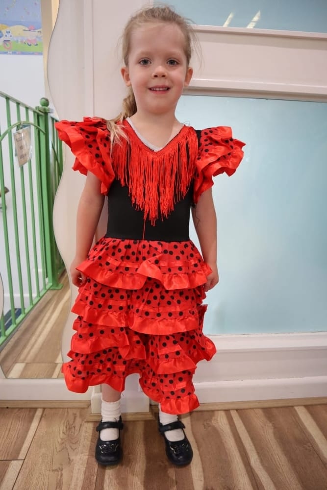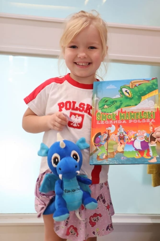 More dressing-up took place on our ‘Around the World Day’ when the children brought in holiday photos for circle time ‘show and tell.’ The ‘Dragon from Krakow’ Poland was very popular. This special story all about a dragon is written in Polish which Miss Gosia our nursery nurse from Poland translated for us all. She taught us a little bit of Polish along the way too.