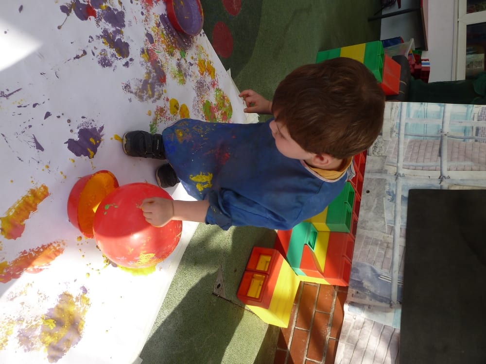 The early years and Peter Rabbits were joined by some of our holiday club members to experiment with using balloons as tools to transfer paint from the trays onto the large sheet of paper. Dipping, rolling, bouncing and mixing, there was so much to explore as the children worked alongside each other to make a huge pattern. They also used their hands and fingers to mix the paint still further. Such a great activity which had everyone absorbed in the paint splattering experience.