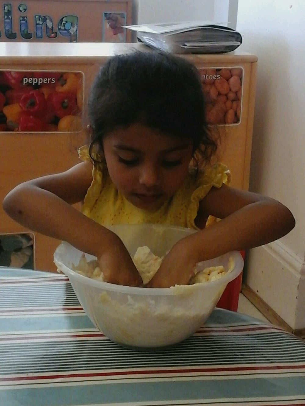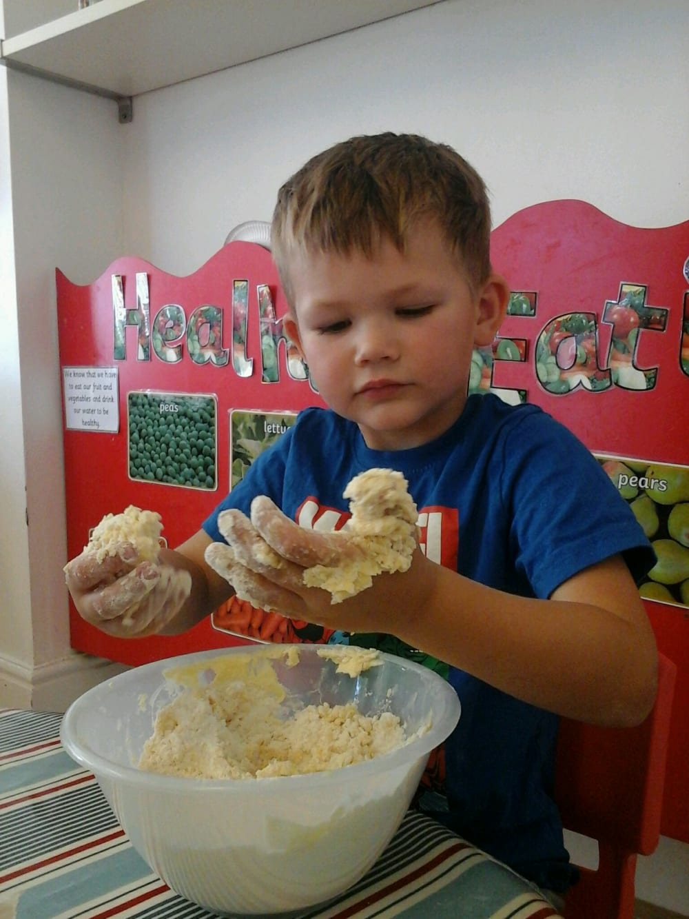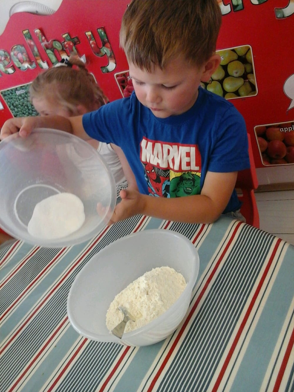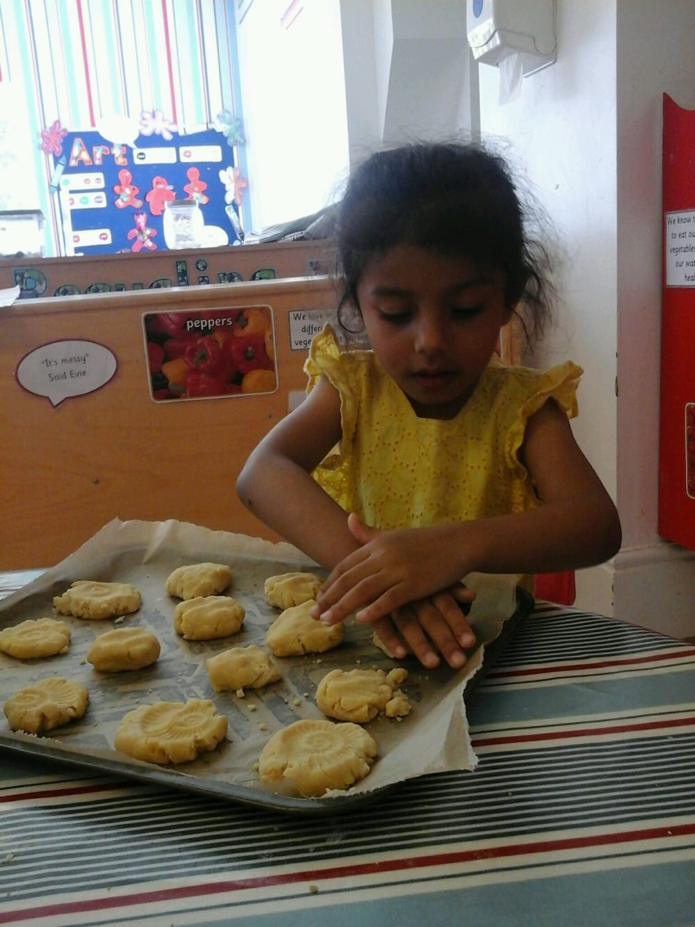 Meanwhile indoors it was time for some baking. After reading the recipe and gathering and weighing the ingredients it was time to start making the biscuits. After rubbing the margarine into the flour and mixing in the water, the dough was shaped into rounds and shell cutters were used to make a nice finish. Once baked and cooled, the biscuits were ready for eating! Delicious!