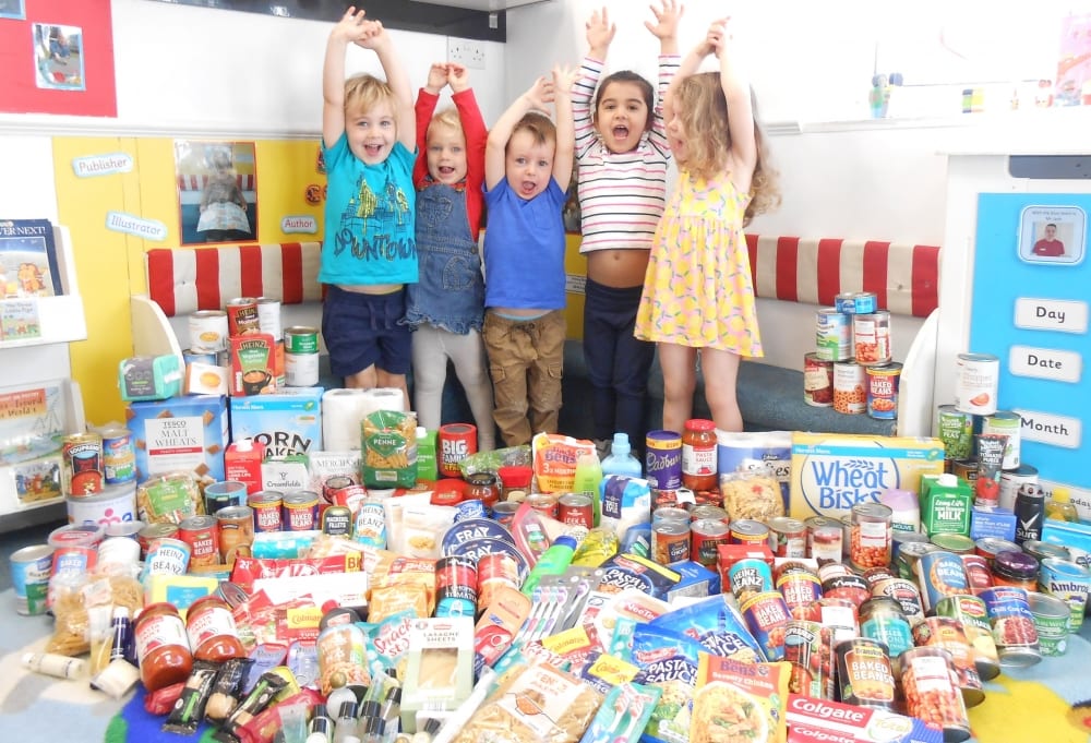 For Harvest Festival this year we asked our children to bring in donations of food in tins, jars or packets to support the work of The Canaan Trust. As the photos show, we had a fantastic response from our generous families.