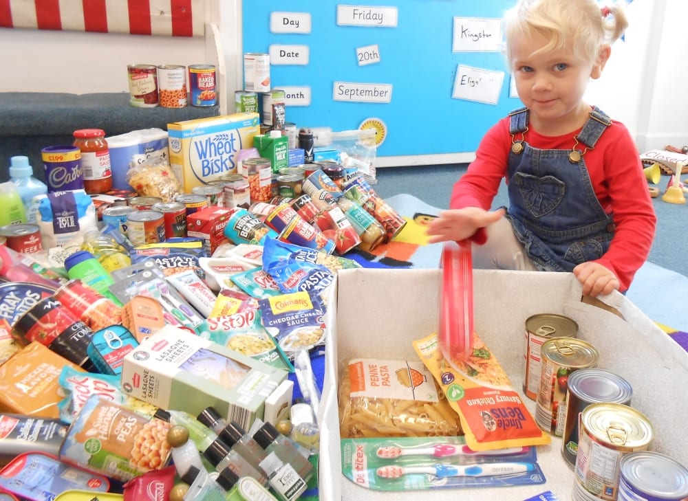 During circle time the Early Years children spoke about the donations we had received and how the food and other items would help to make life a little better for people who are homeless.The children were really delighted with the number of different items in our collection. The colourful packaging and their contents provoked lots of excited chatter!