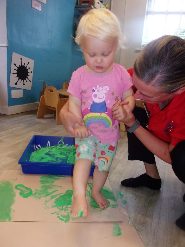 Then there’s the fun of exploring the properties of paint, finding ways to apply it, mixing to make new colours, and even making footprints!