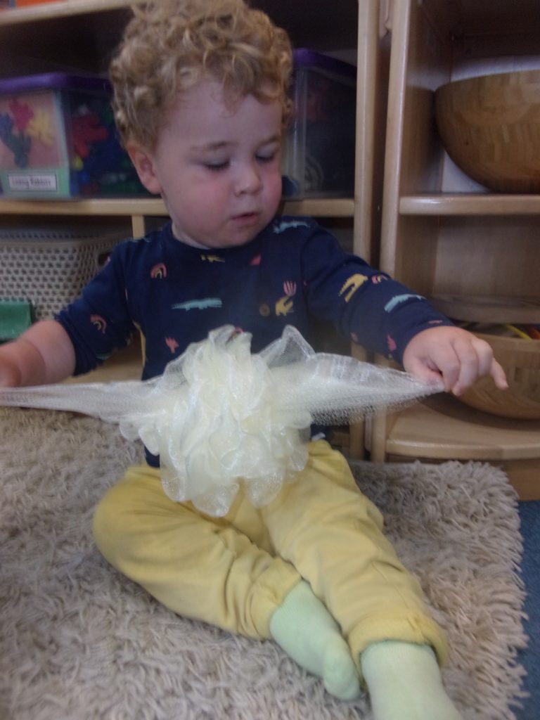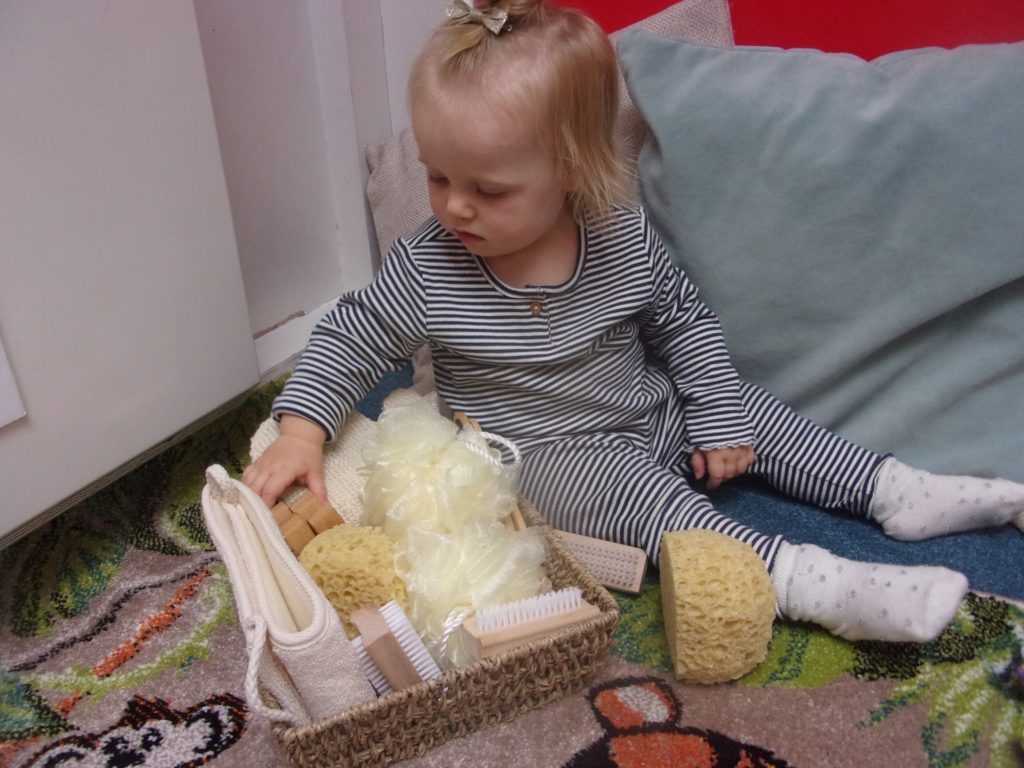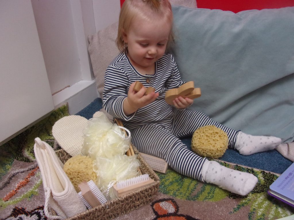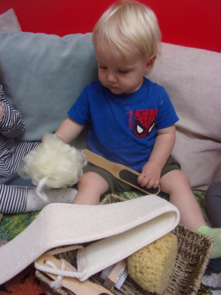 The recent treasure basket made up of objects from the bathroom held their attention as item by item everything was given a thorough examination by our curious Bobtails.