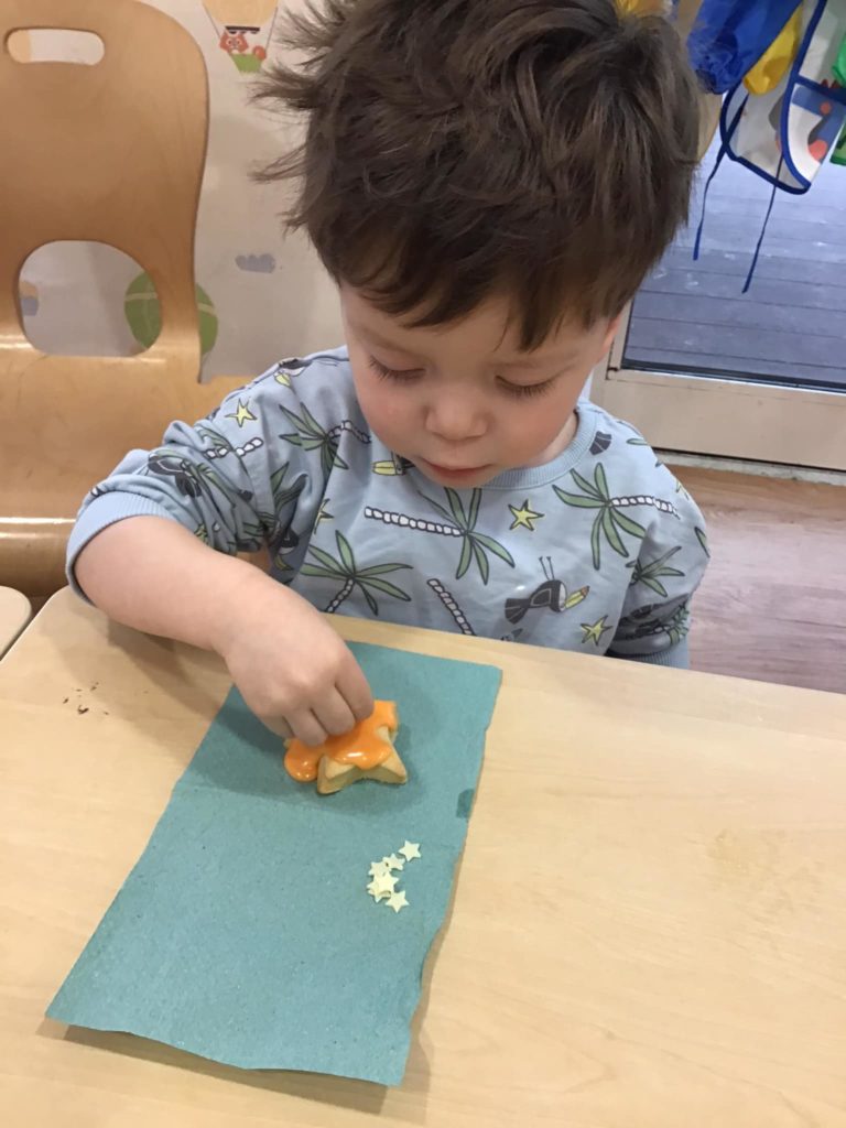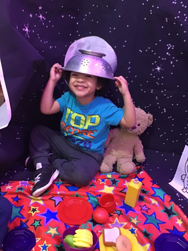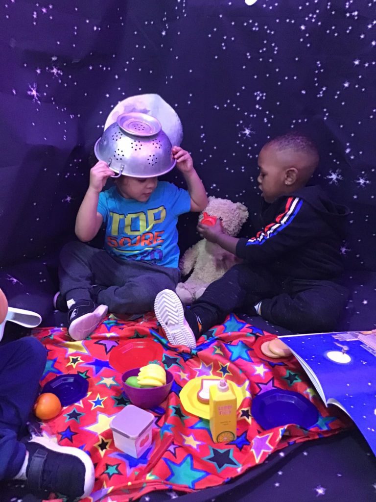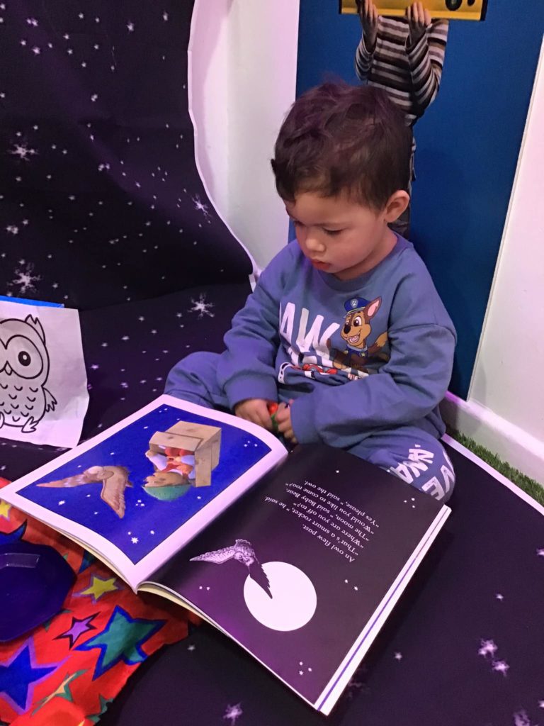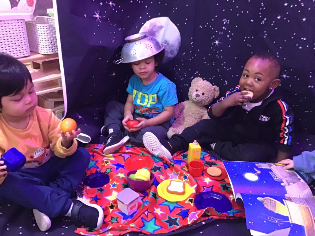 Peter Rabbits loved their trip to the moon when they recreated the story of ‘Whatever Next!’ by Jill Murphy. They dressed up with a space helmet made from a sieve and space boots made from wellington boots. They then jumped into their rocket which was made from a box and flew to the moon to have a picnic before returning to nursery.