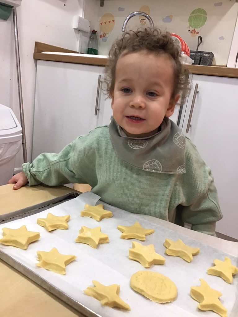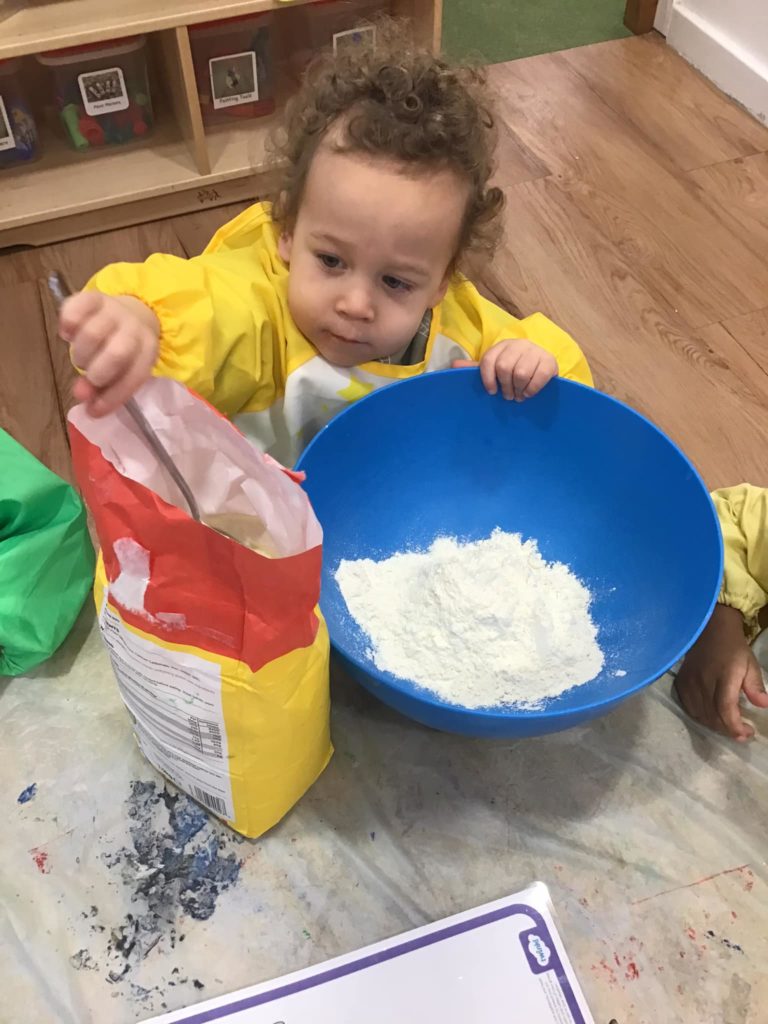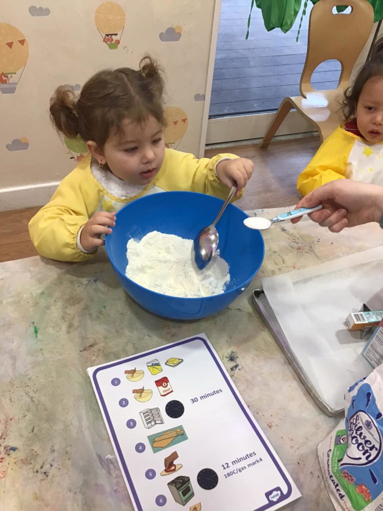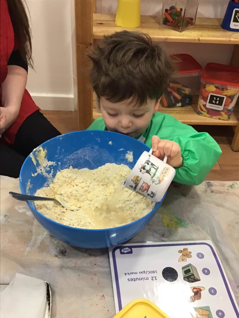 The Benjamin Bunnies have been busy making biscuits. They were able to use their fine motor skills to balance the flour and tip it into the bowl. They carefully poured the milk in as well as all the other ingredients. They used the shape they wanted to cut their biscuit and then enjoyed decorating the final result!