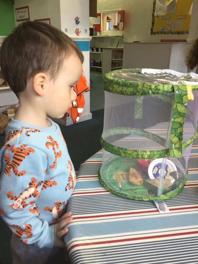 The Early Years children have all enjoyed watching the steady growth of the recently arrived caterpillars. They were fascinated to see how they moved and wriggled around the pot. They are keeping a careful watch for the time when they become a chrysalis!