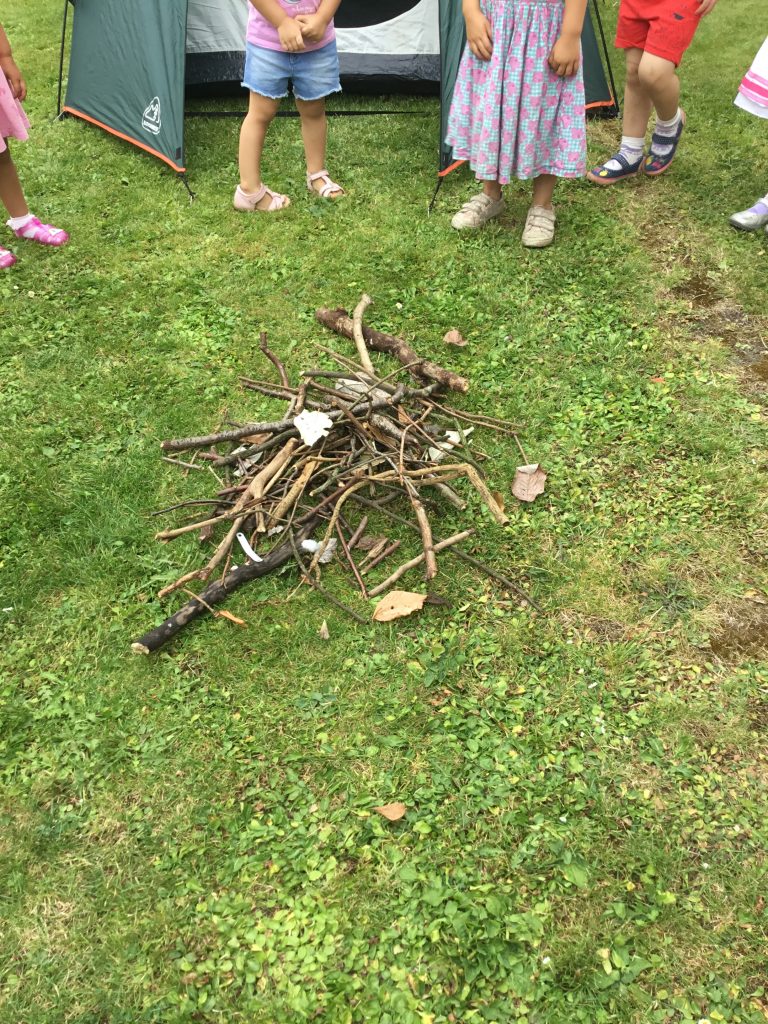 They learnt how to pitch their own tent, went hunting for campfire wood in the garden and cooked their own sausages and marshmallows on the disposable BBQ with help from Miss Amy!