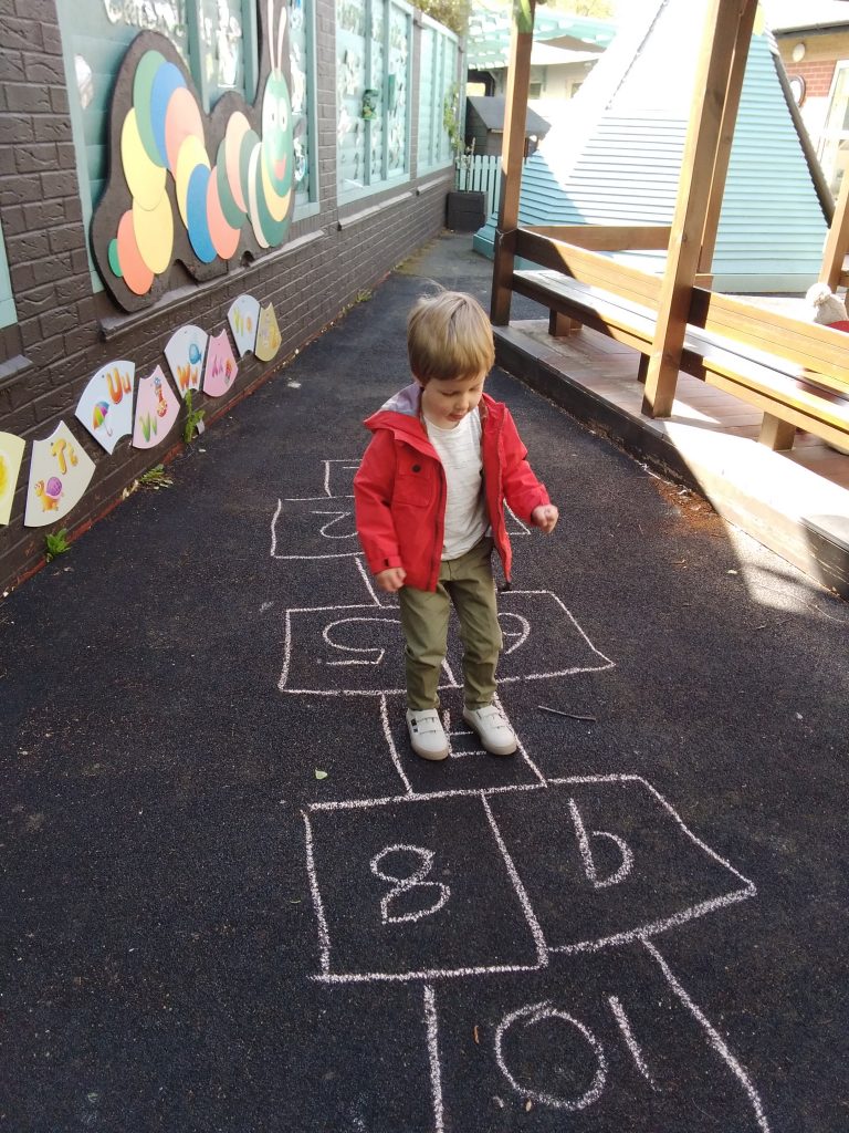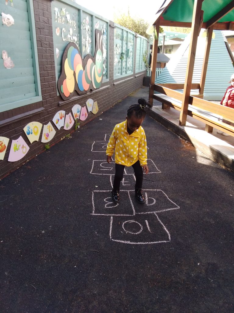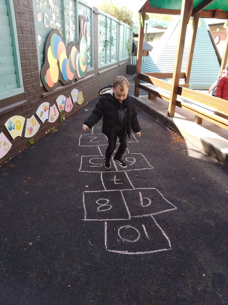 The Early years had lots of fun playing hopscotch and going on a number hunt in the garden!