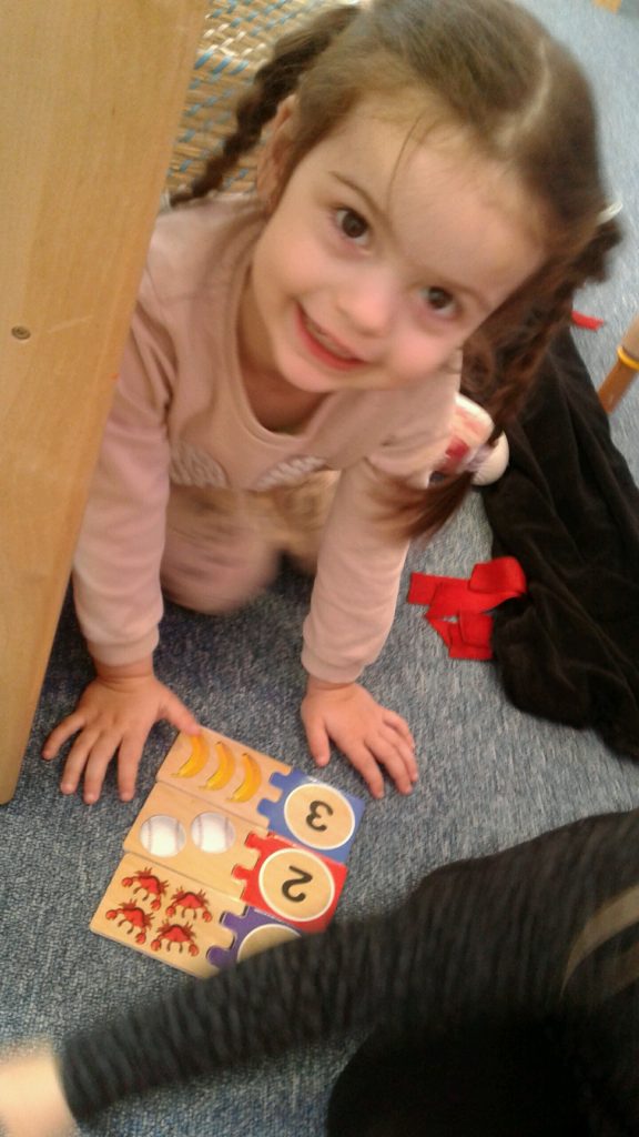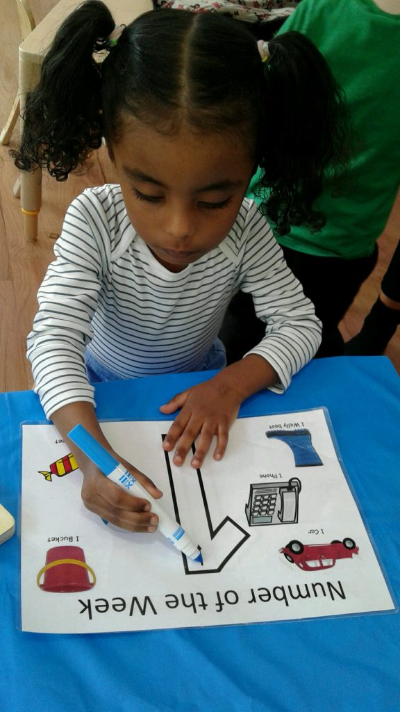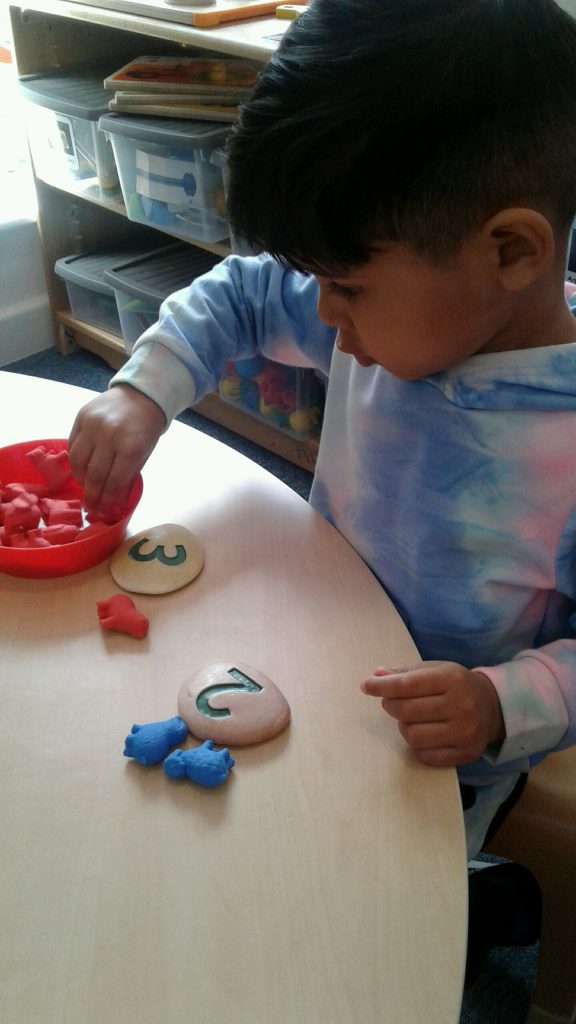 The Peter Rabbits enjoyed tracing over the big number to practice their fine motor skills and concentrated on sorting the bears to match the stone numbers.