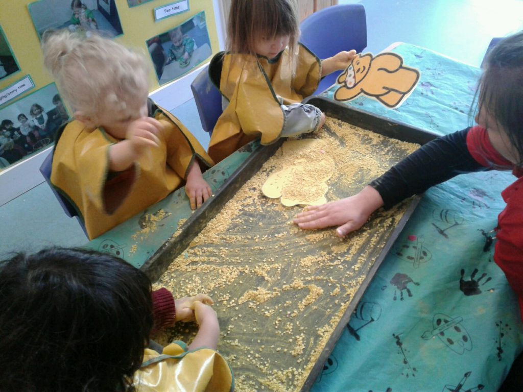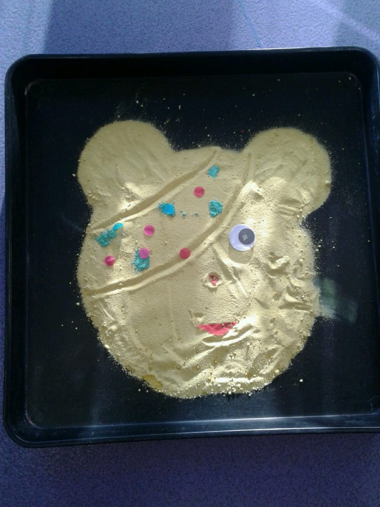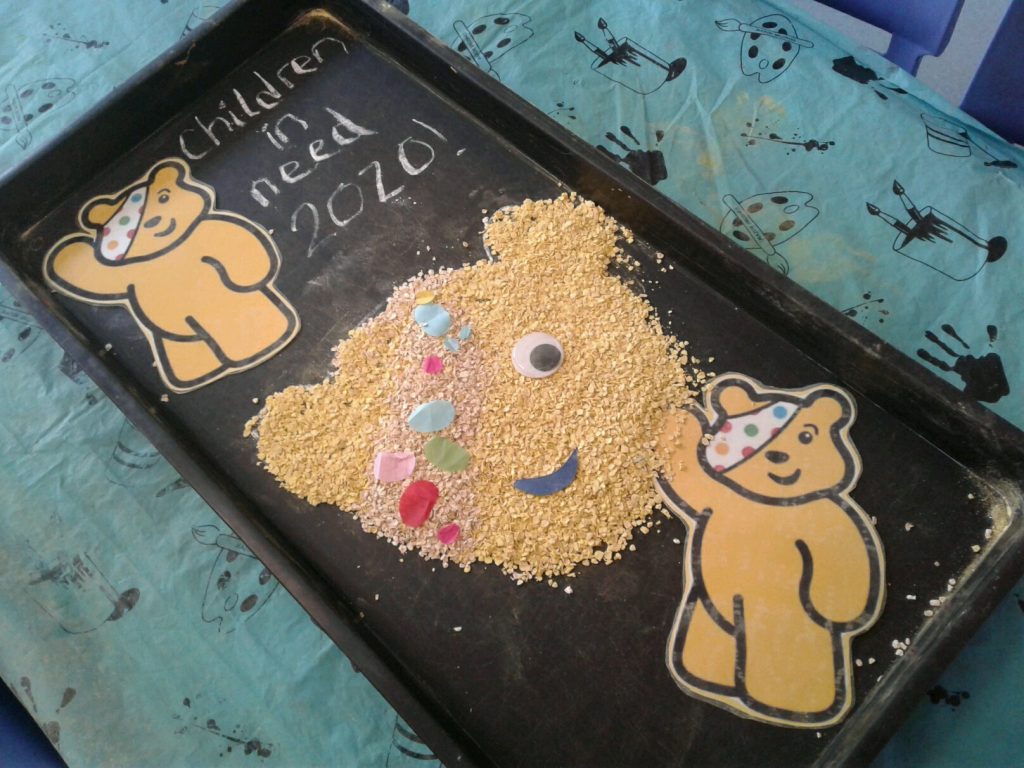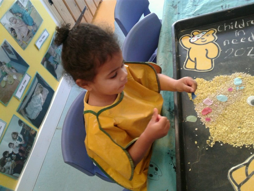 Over at Rosemary Lane in Lincoln, the Bobtails and Benjamin Bunnies were very excited by Pudsey Bear and all his spots. They spent the day experimenting with various sensory media.