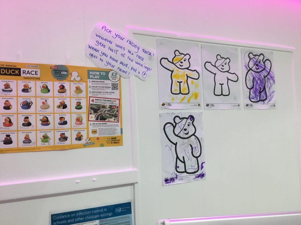 We have also started up our colouring competition, which will be closed at the end of the official Children in Need week, and the staff are eager to find out who will win the famous Rubber Duck Race!
