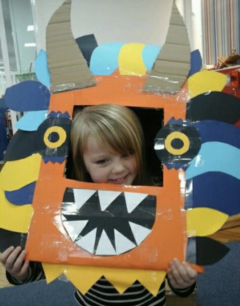 We made a real Chinese dragon out of a cardboard box and held our very own Chinese festival parade, playing instruments as we went along.