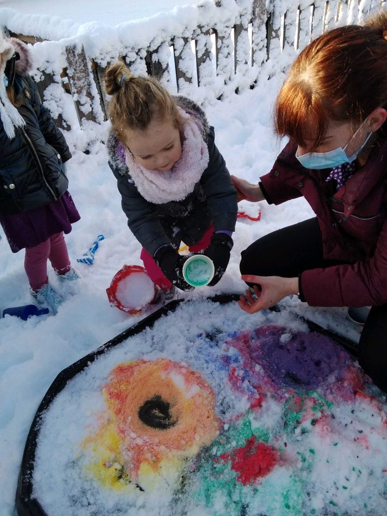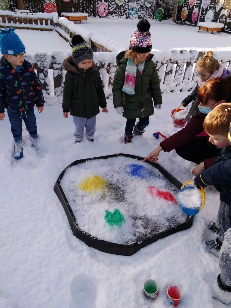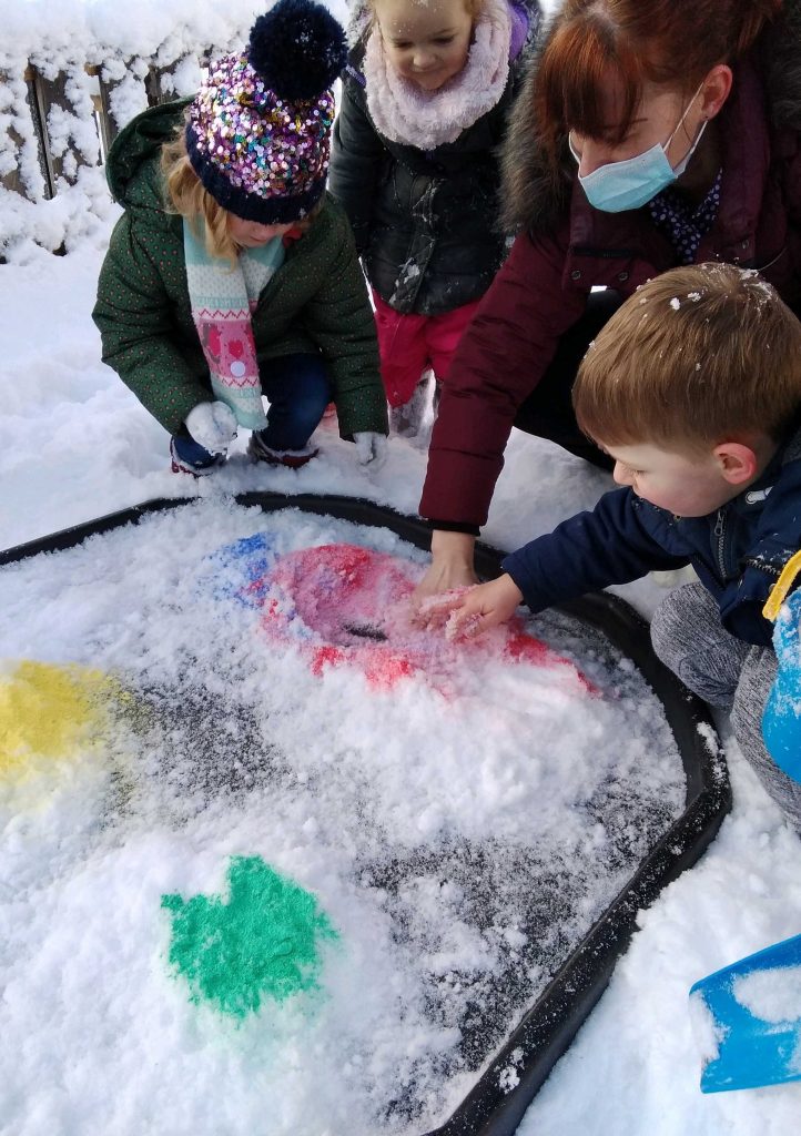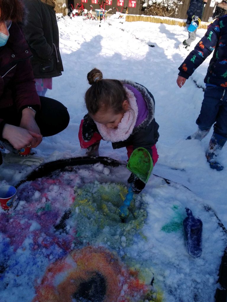 This was a great day in our winter wonderland and the children were fascinated to see the effects made by colouring the snow.