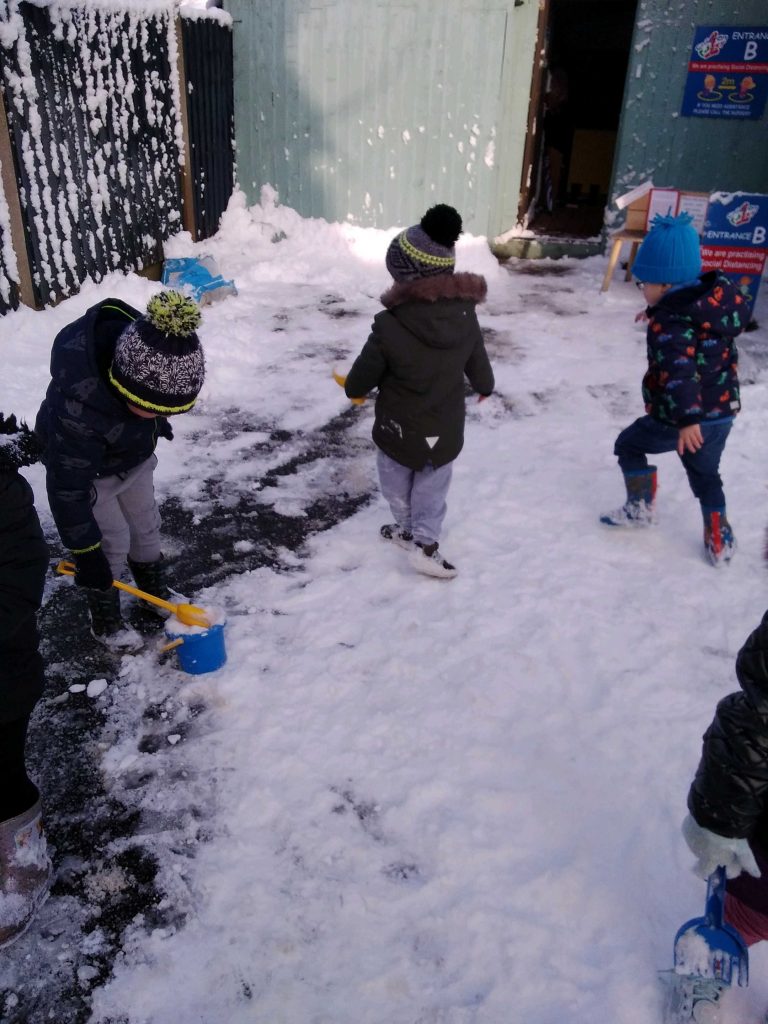 Firstly, the children loved being ‘big helpers,’ working with Miss Jac and Miss Lindsey to move the snow to make a path for the mummies and daddies.