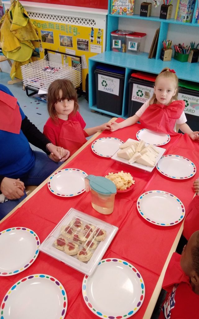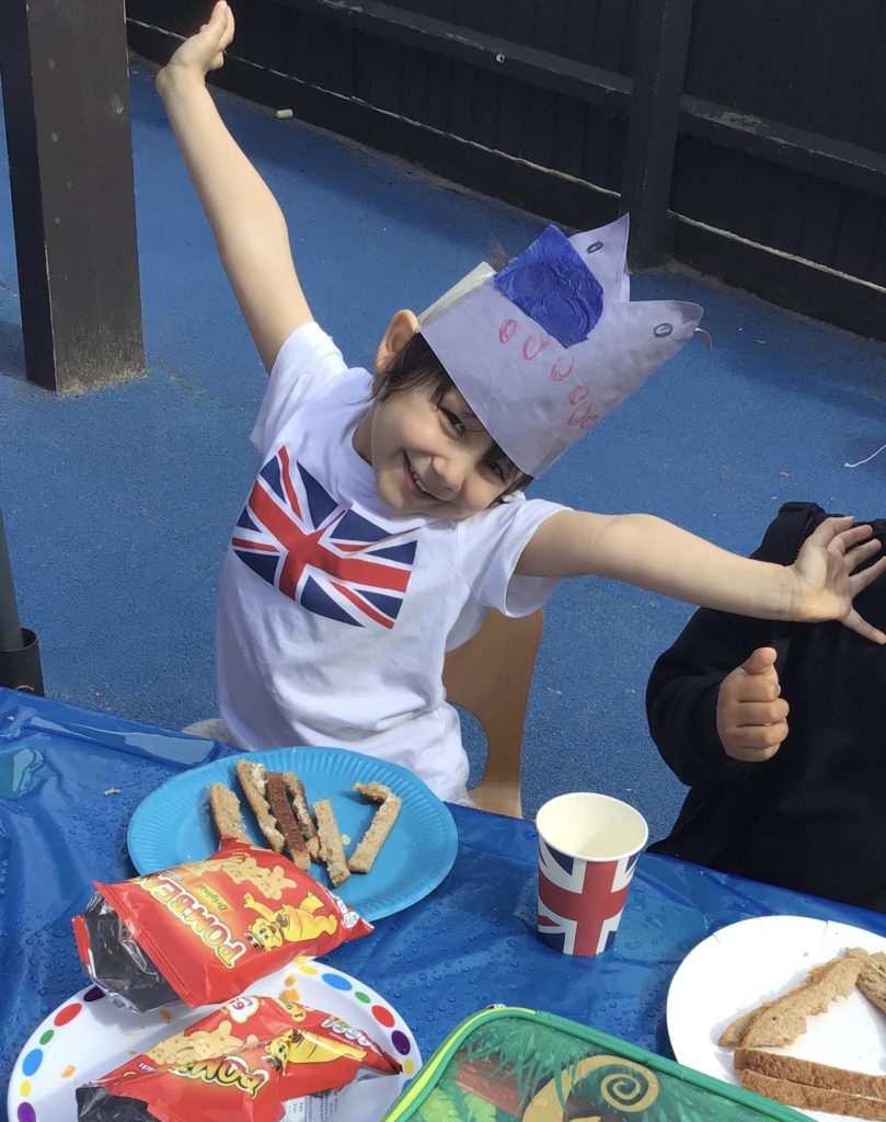 Wow! Such a busy time and it’s no wonder that by the end of it everyone was ready for a coronation party! Our cooks did us proud, putting on a spread fit for a king! Miss Samantha at Bilborough produced a fantastic cake decorated with a colourful flag which tasted every bit as good as it looked. With dancing, singing and flag waving, a right good time was had by all!