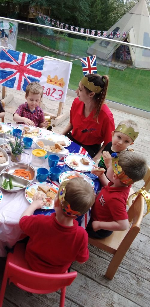 Our nurseries enjoyed a wonderful time in the week leading up to the coronation with a host of red, white and blue themed activities. There was plenty of painting with royal crowns, bunting and flags to be prepared. There was the fun of colourful tuff spots and royal gloop to be explored. Castles were built and role play for our brave knights and princesses was the order of the day! Portraits of the new king were created and a fabulous letter of congratulations was composed at our Grantham nursery where they also made a time capsule to be buried in the nursery garden!