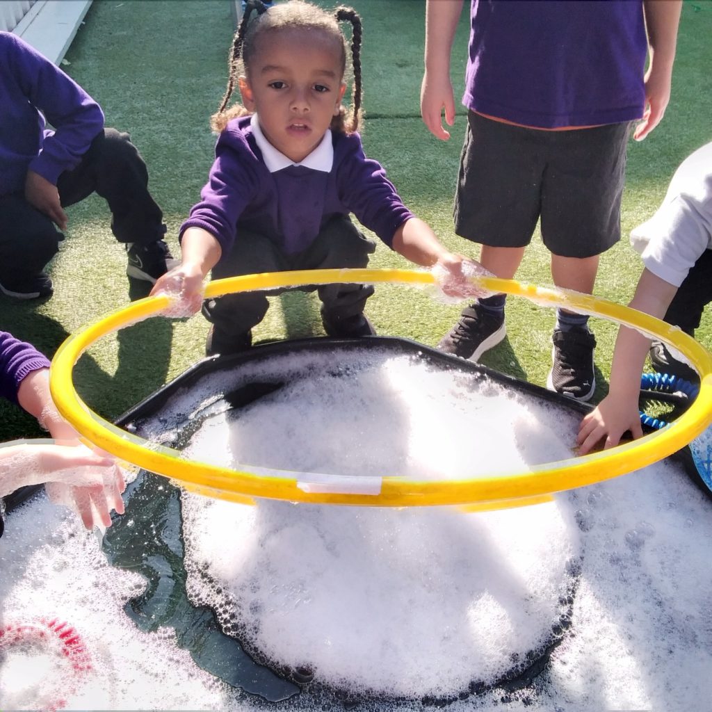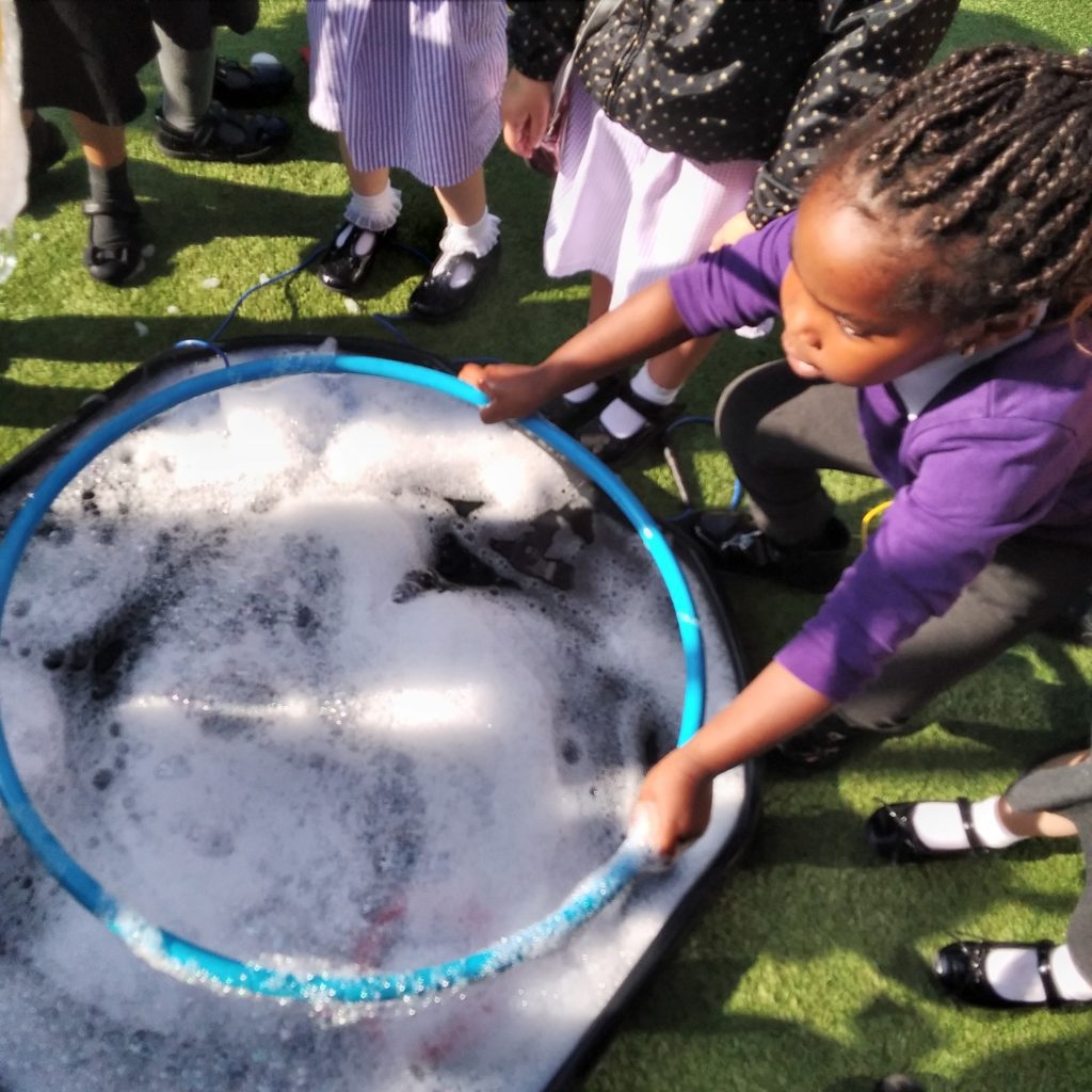 As the outdoors beckons, the children are keen to have fun, making giant bubbles, balancing on the beams, recording their observations, or playing in their dens. There’s such a wide range of opportunities for creative play outdoors which stimulate curiosity and help the children to develop their skills.