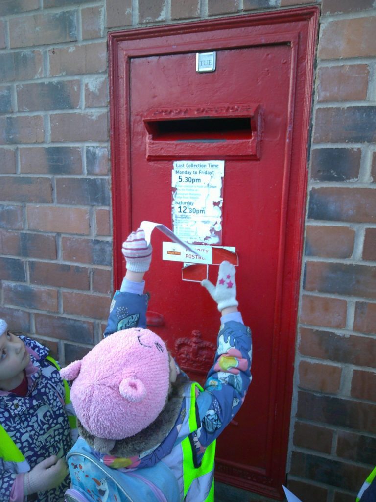 After they had done this, some of our Early Years enjoyed going on a bus to the local Post Office where they bought stamps, put them on their letters and placed them into the post box ready for them to travel all the way to the North Pole.