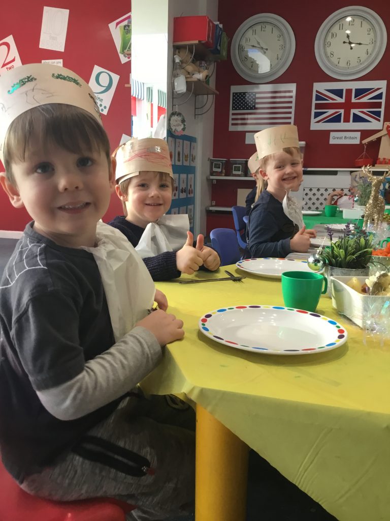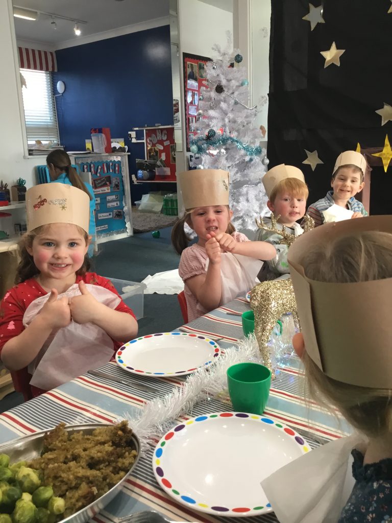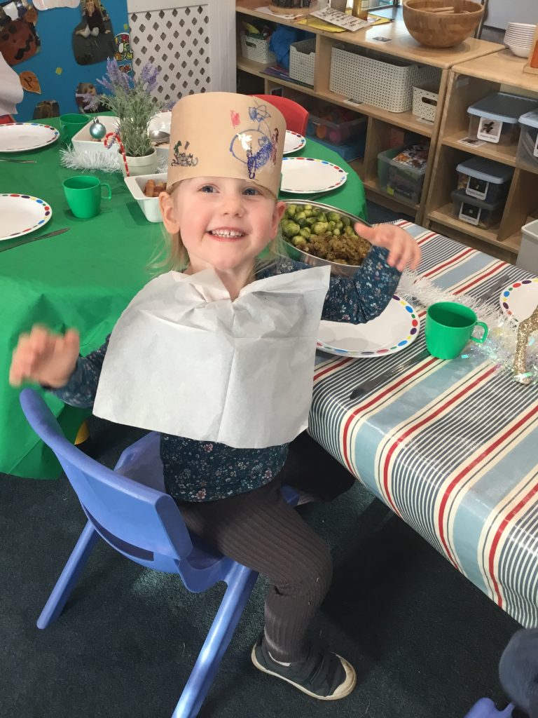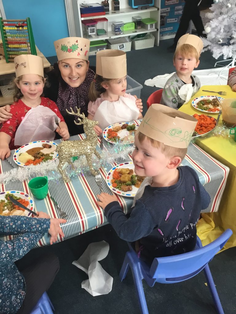 Our early years absolutely loved their traditional Christmas dinner. Wearing our home-made party hats we sat down together for this delicious festive meal.