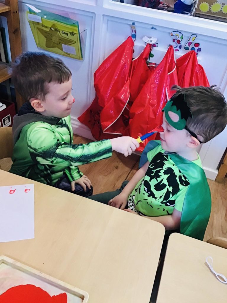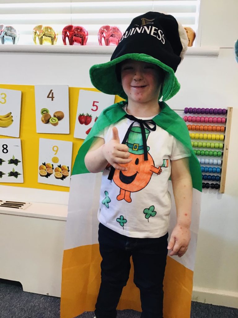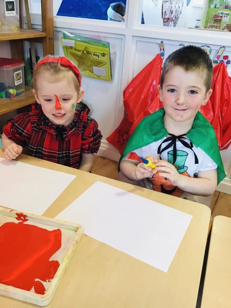 In the Jemima’s and Bobtails’ rooms we’re also having an exciting day painting our special Shamrocks and making red splodges! We loved seeing everyone’s green outfits and Mr Men costumes!