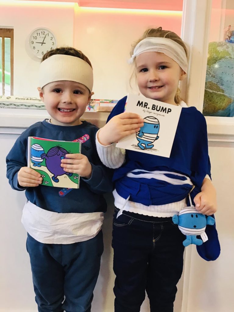 Our children in the Early Years were given the choice of coming dressed in green or as a Mr Men character to support Comic Relief. We’ve got some great costumes here today. and plenty of smiley faces! Clearly, lots of effort has been made by everyone! The children are having lots of fun playing ‘hook a red nose’, reading Mr Men stories, drawing, and painting the Mr Men characters and painting each other’s noses red!