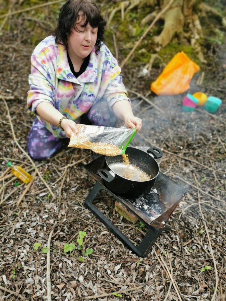 From building cosy dens using wood they had collected, to using small pieces of wood to create stick figures and then enjoying the taste of popcorn cooked outside, it’s been fun all the way for our young explorers.