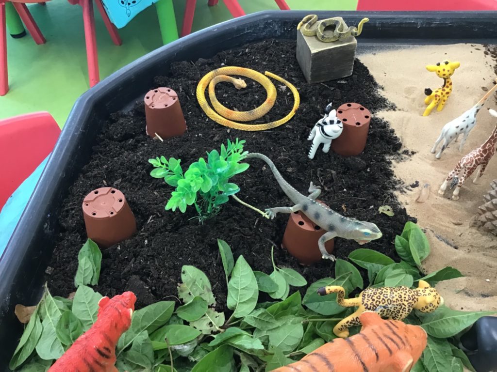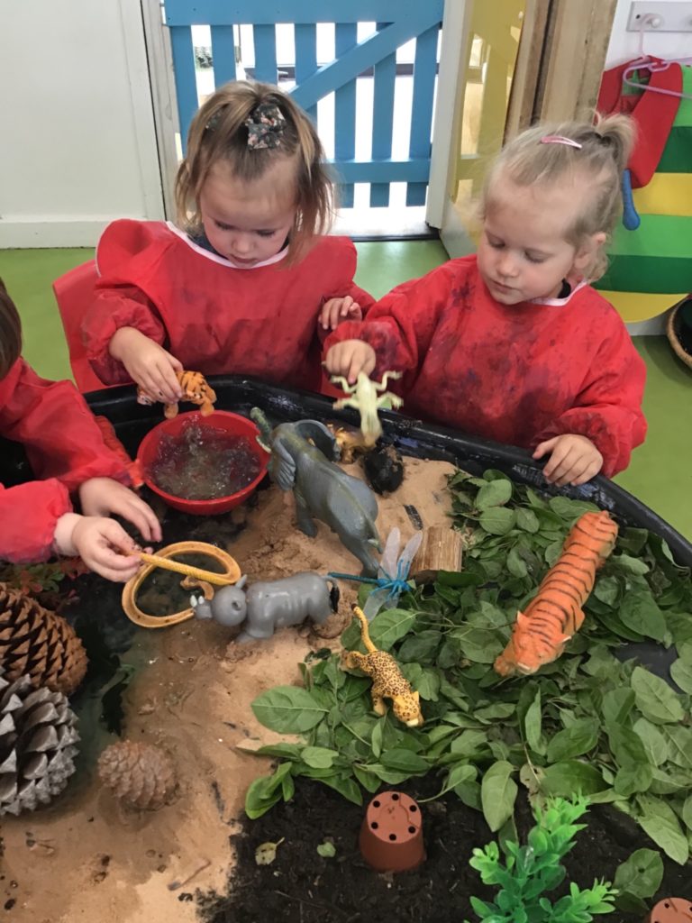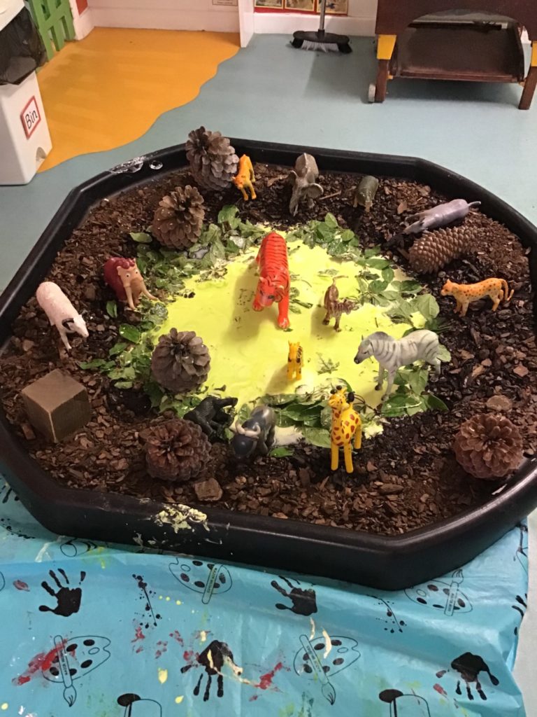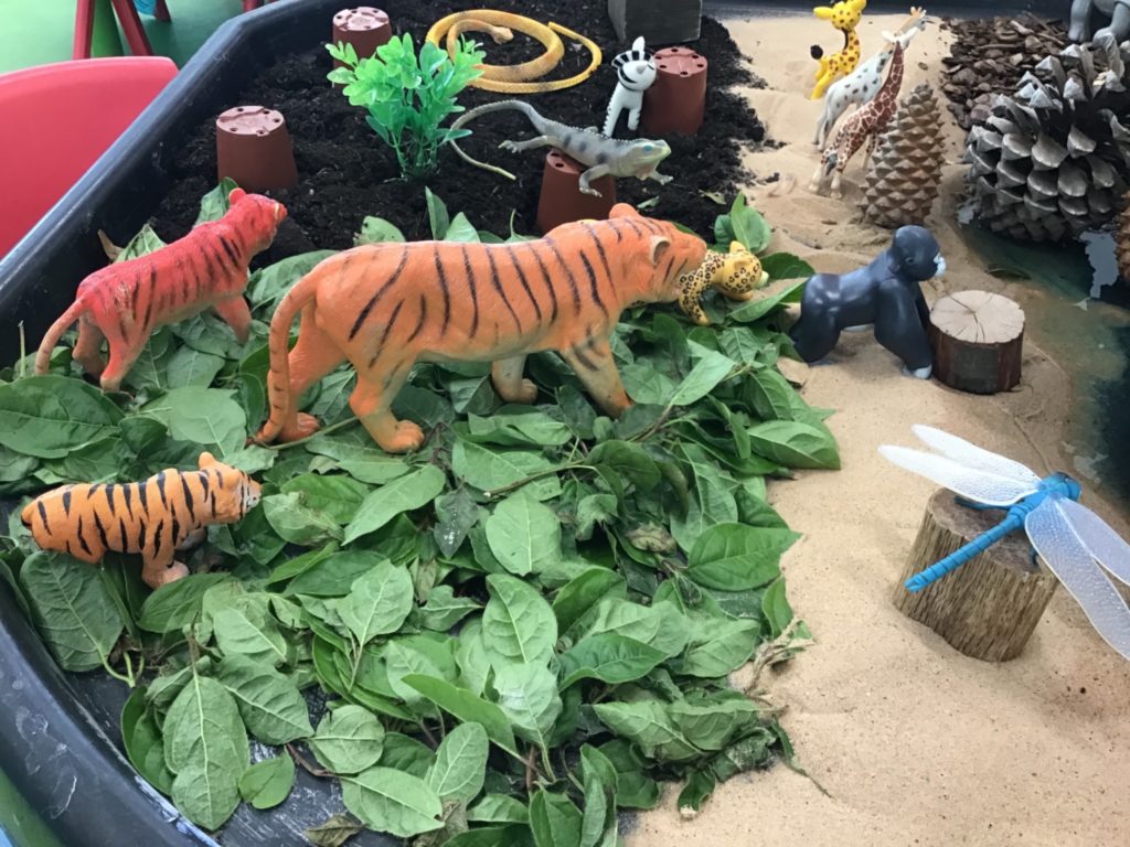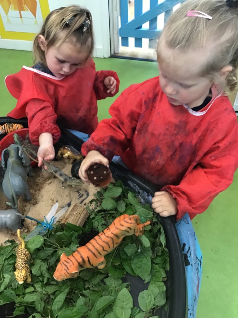 As part of our Adventures topic, the Peter Rabbits have been exploring the jungle using the tuff spot which Miss Elli transformed into a series of animal habitats.